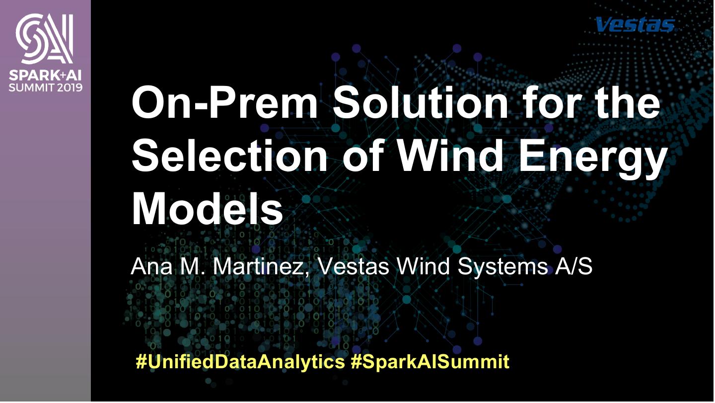 2 .On-Prem Solution for the Selection of Wind Energy Models Ana M. Martinez, Vestas Wind Systems A/S #UnifiedDataAnalytics #SparkAISummit