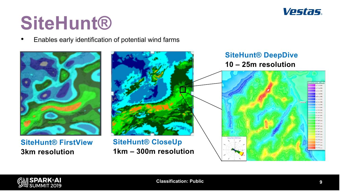 8 .SiteHunt® • Enables early identification of potential wind farms SiteHunt® FirstView SiteHunt® CloseUp 3km resolution 1km – 300m resolution Classification: Public 8