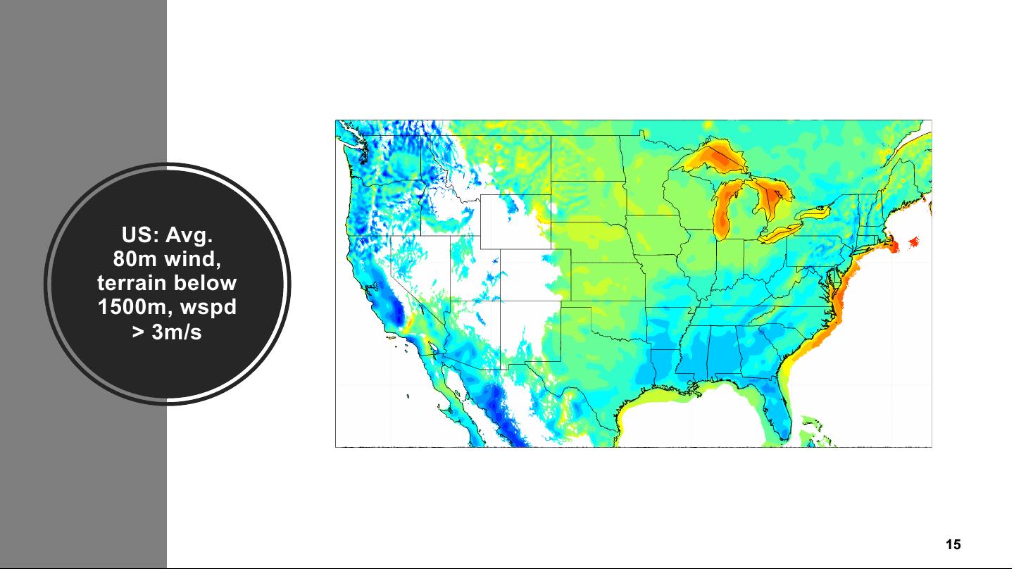 15 . US: Avg. 80m wind, terrain below 1500m, wspd > 3m/s Classification: Public 15