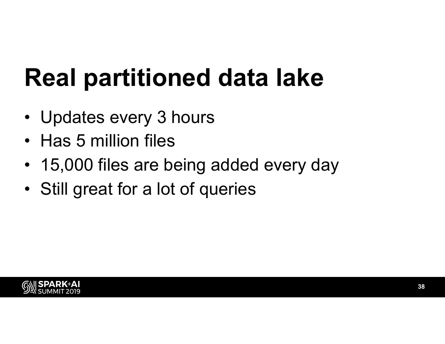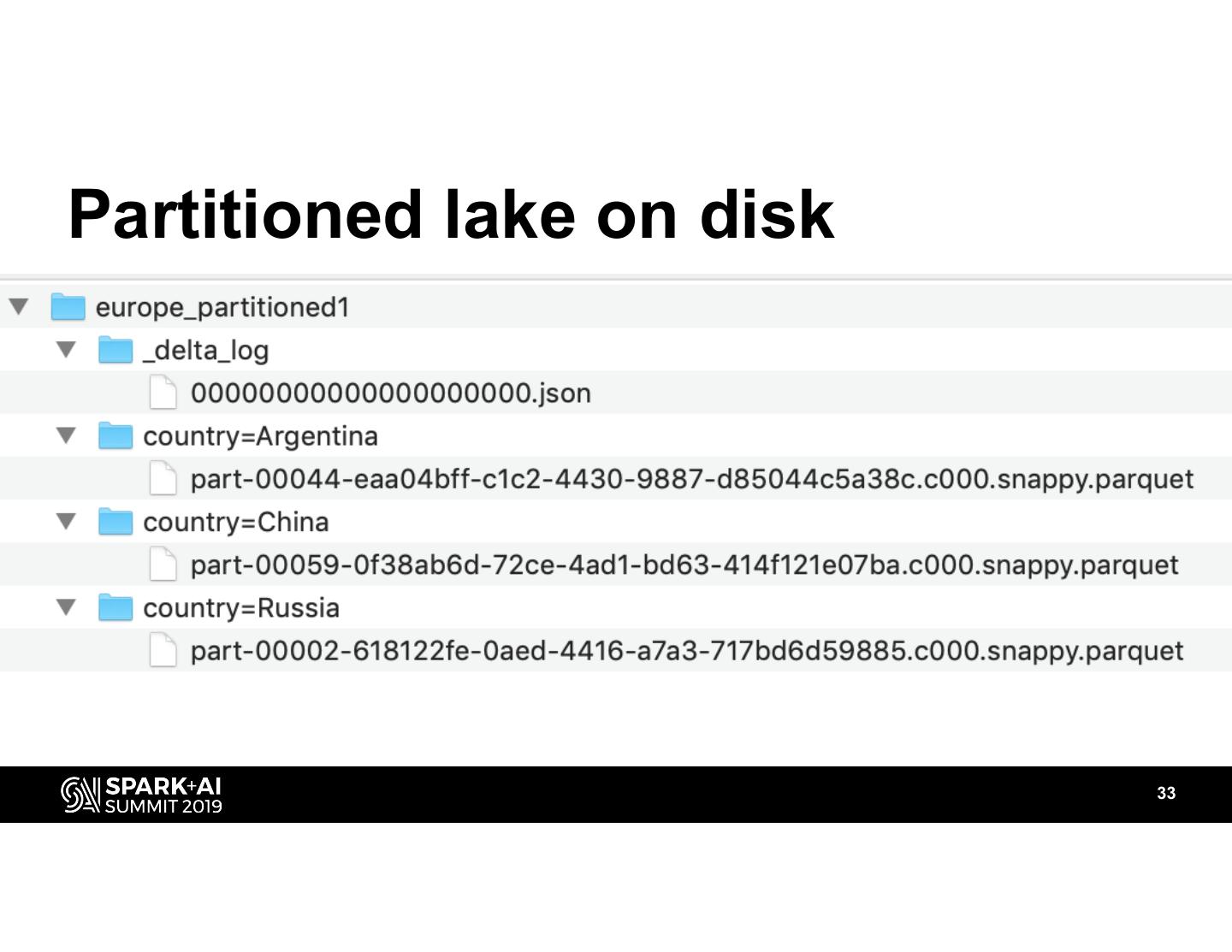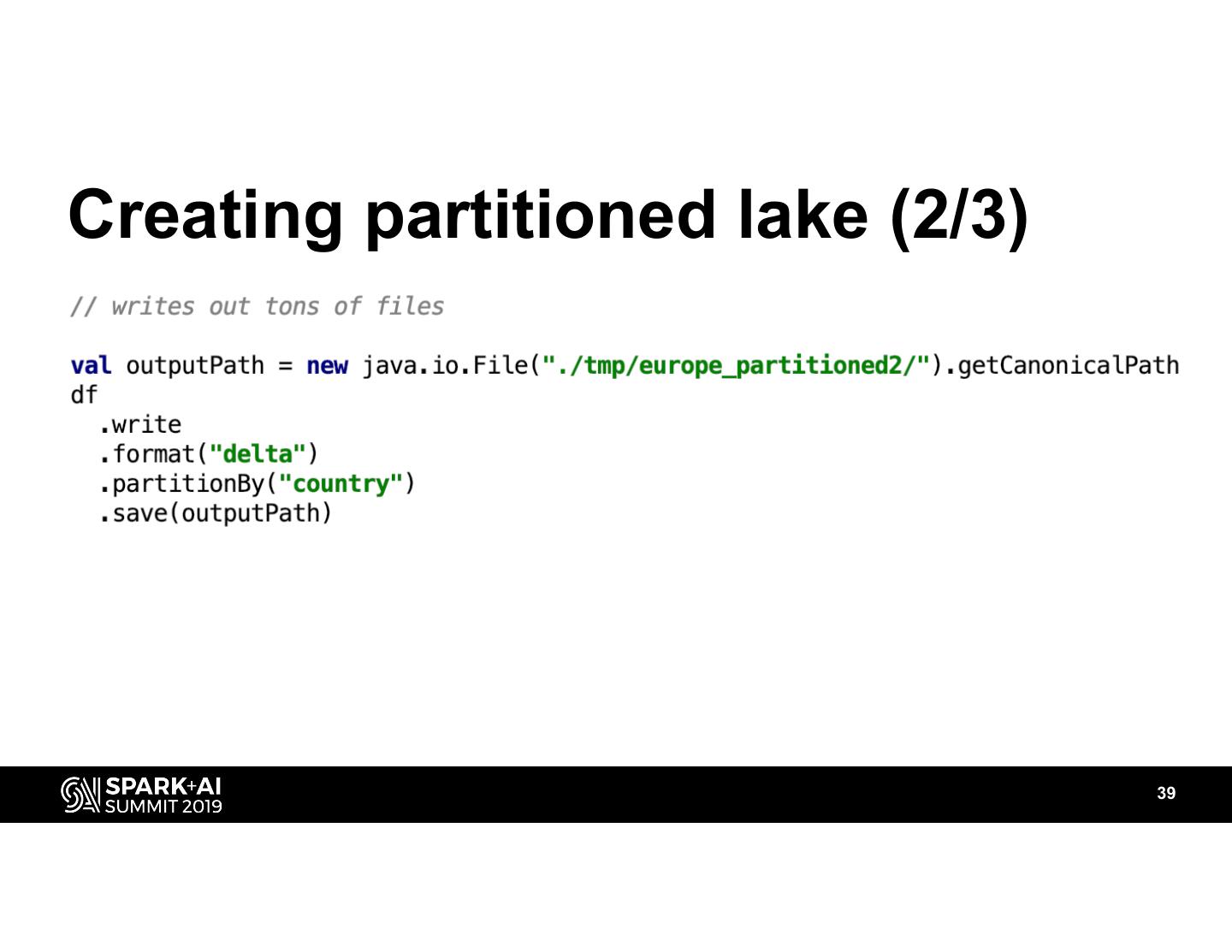 This talk will start by explaining the optimal file format, compression algorithm, and file size for plain vanilla Parquet data lakes. It discusses the small file problem and how you can compact the small files. Then we will talk about partitioning Parquet data lakes on disk and how to examine Spark physical plans when running queries on a partitioned lake.