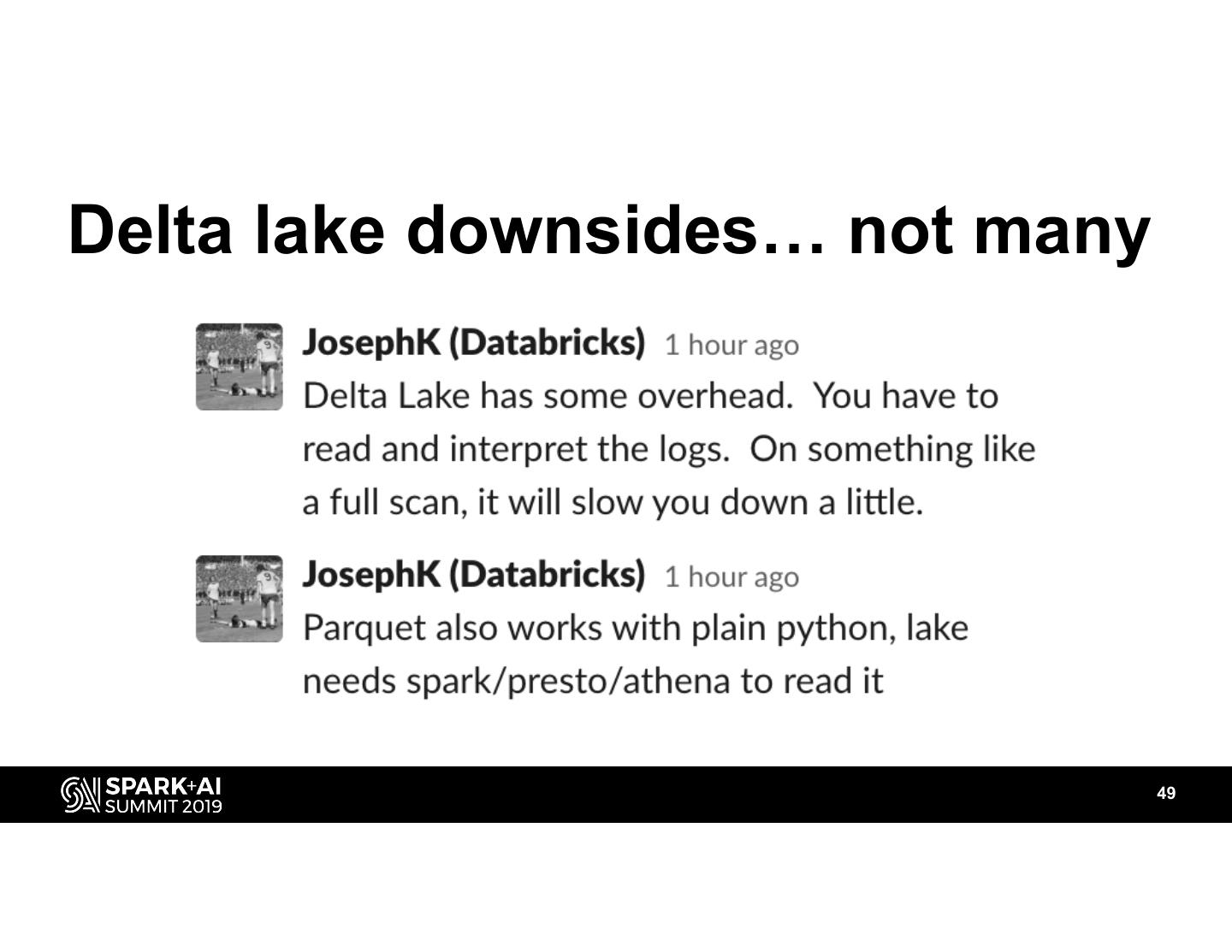 7 .Delta Lake =!= Databricks Delta https://github.com/delta-io/delta/issues/49 7