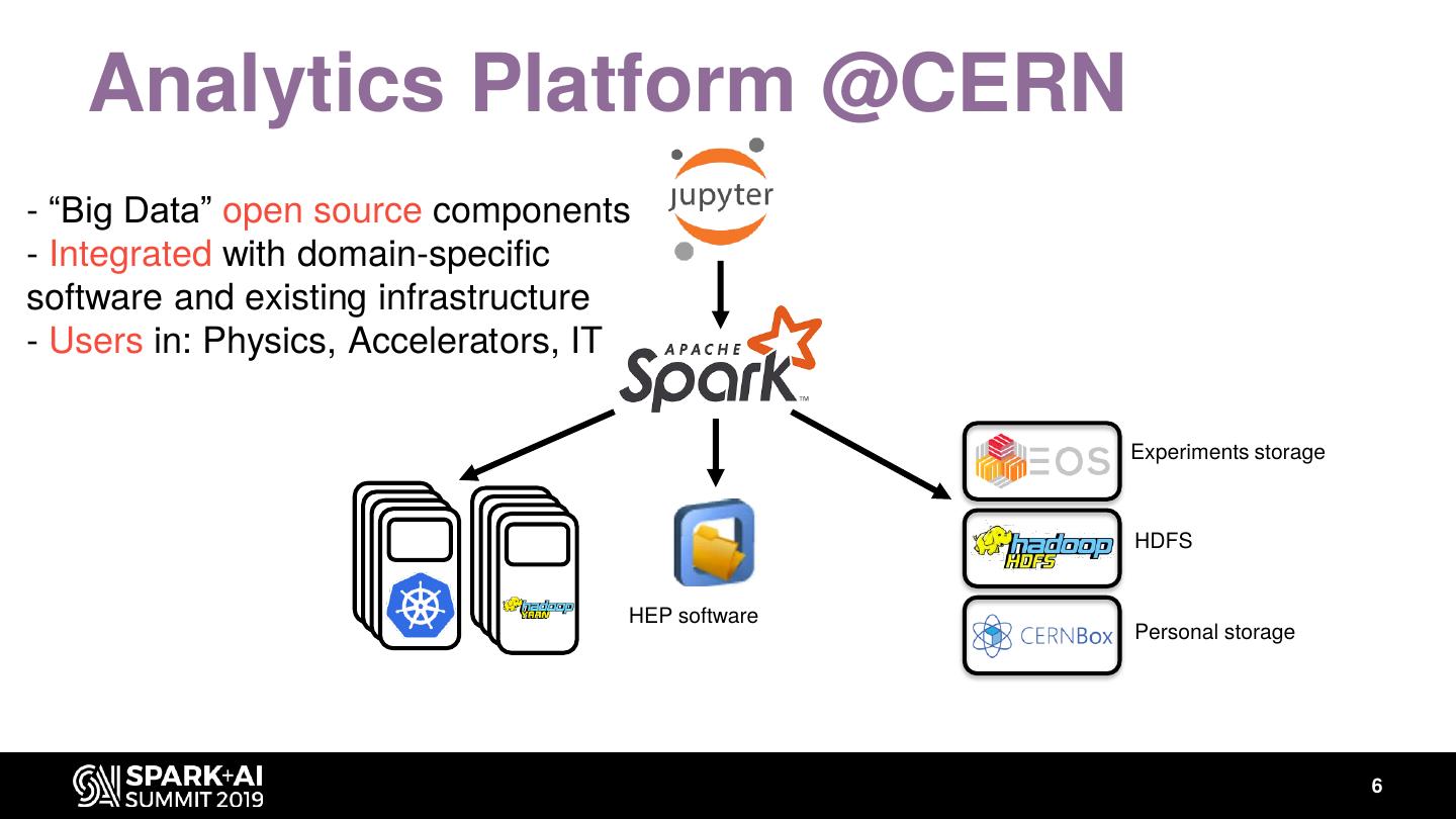 6 . Analytics Platform @CERN - “Big Data” open source components - Integrated with domain-specific software and existing infrastructure - Users in: Physics, Accelerators, IT Experiments storage HDFS HEP software Personal storage 6