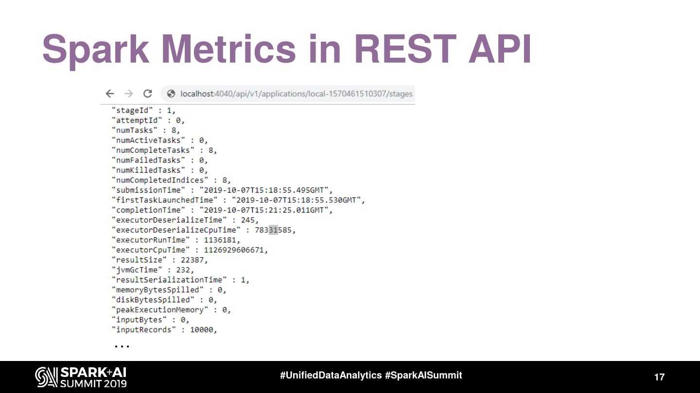 17 .Spark Metrics in REST API … #UnifiedDataAnalytics #SparkAISummit 17