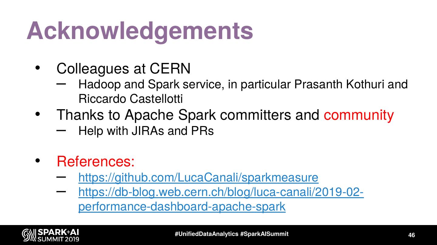 2 .Performance Troubleshooting Using Apache Spark Metrics Luca Canali, CERN #UnifiedDataAnalytics #SparkAISummit
