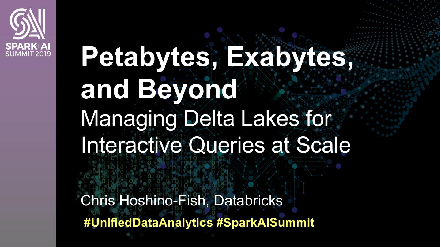 2 .Petabytes, Exabytes, and Beyond Managing Delta Lakes for Interactive Queries at Scale Chris Hoshino-Fish, Databricks #UnifiedDataAnalytics #SparkAISummit