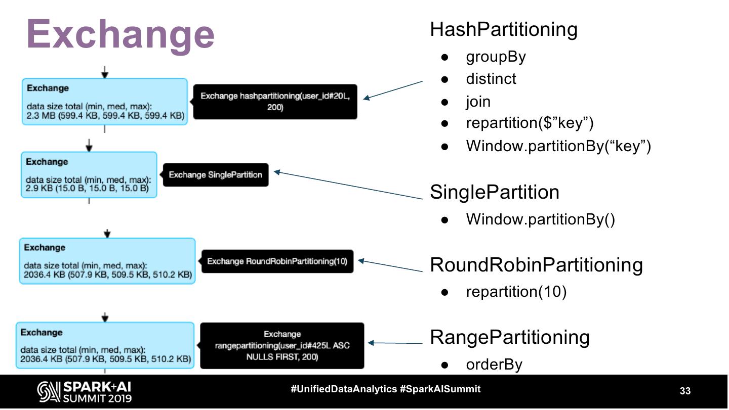 29 .Exchange ● Represents shuffle - physical data movement on the cluster ○ usually quite expensive #UnifiedDataAnalytics #SparkAISummit 29