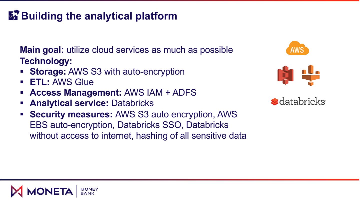 Moneta has repeatedly been recognized as the most innovative bank on the Czech market. This is due in large part to their strategy of completely shifting to the cloud and using data and advanced analytics to innovate the customer experience with use cases ranging from real-time recommendations to fraud detection.