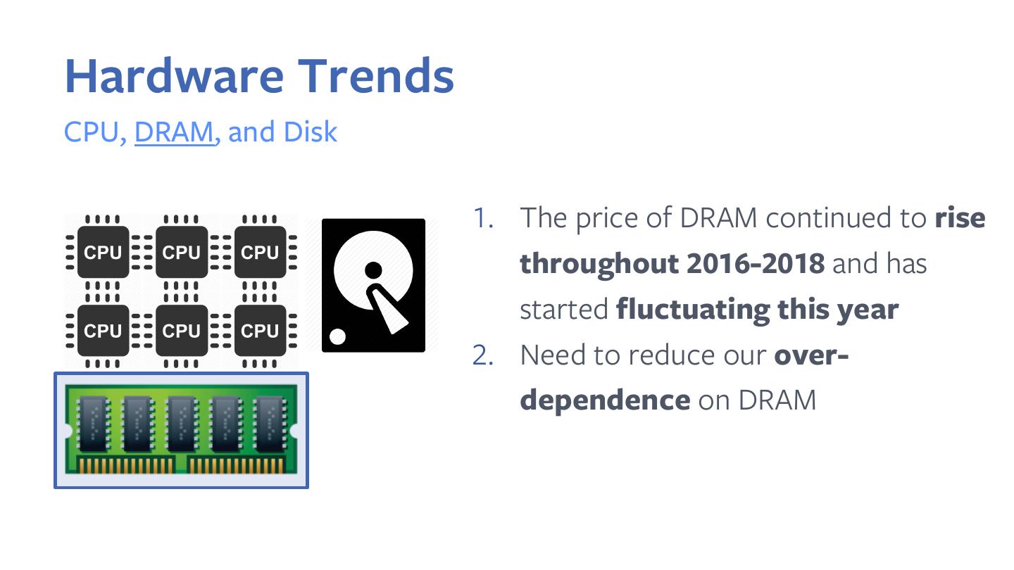 11 .Hardware Trends CPU, DRAM, and Disk 1. The price of DRAM continued to rise throughout 2016-2018 and has started fluctuating this year 2. Need to reduce our over- dependence on DRAM