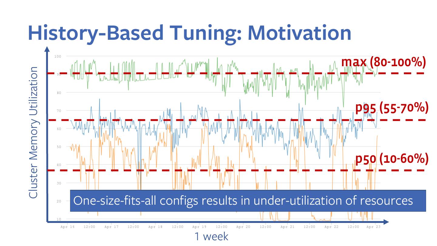 19 .History-Based Tuning: Motivation max (80-100%) Cluster Memory Utilization p95 (55-70%) p50 (10-60%) 1 week