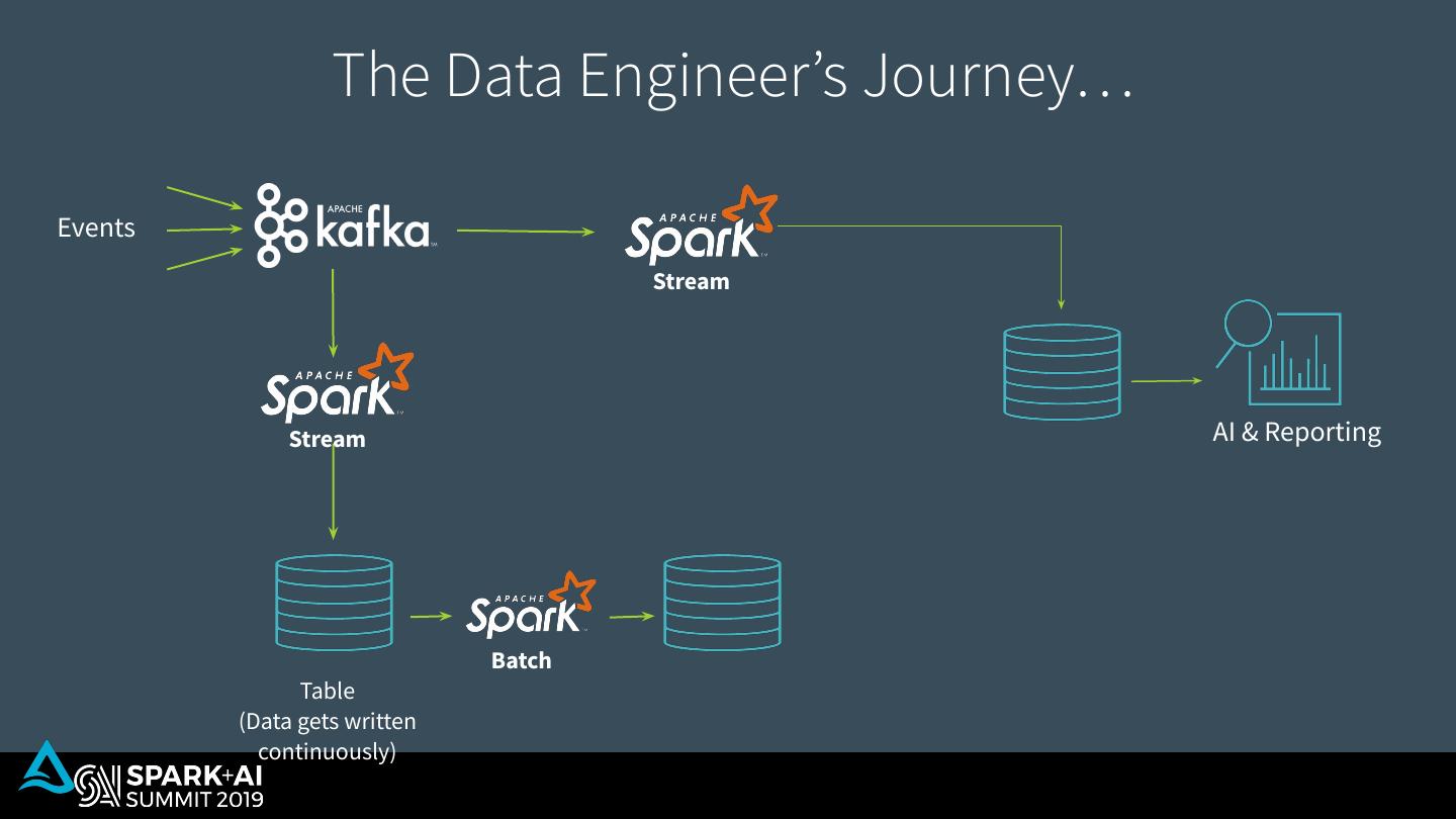 5 . The Data Engineer’s Journey… Events Stream Stream AI & Reporting Batch Table (Data gets written continuously)