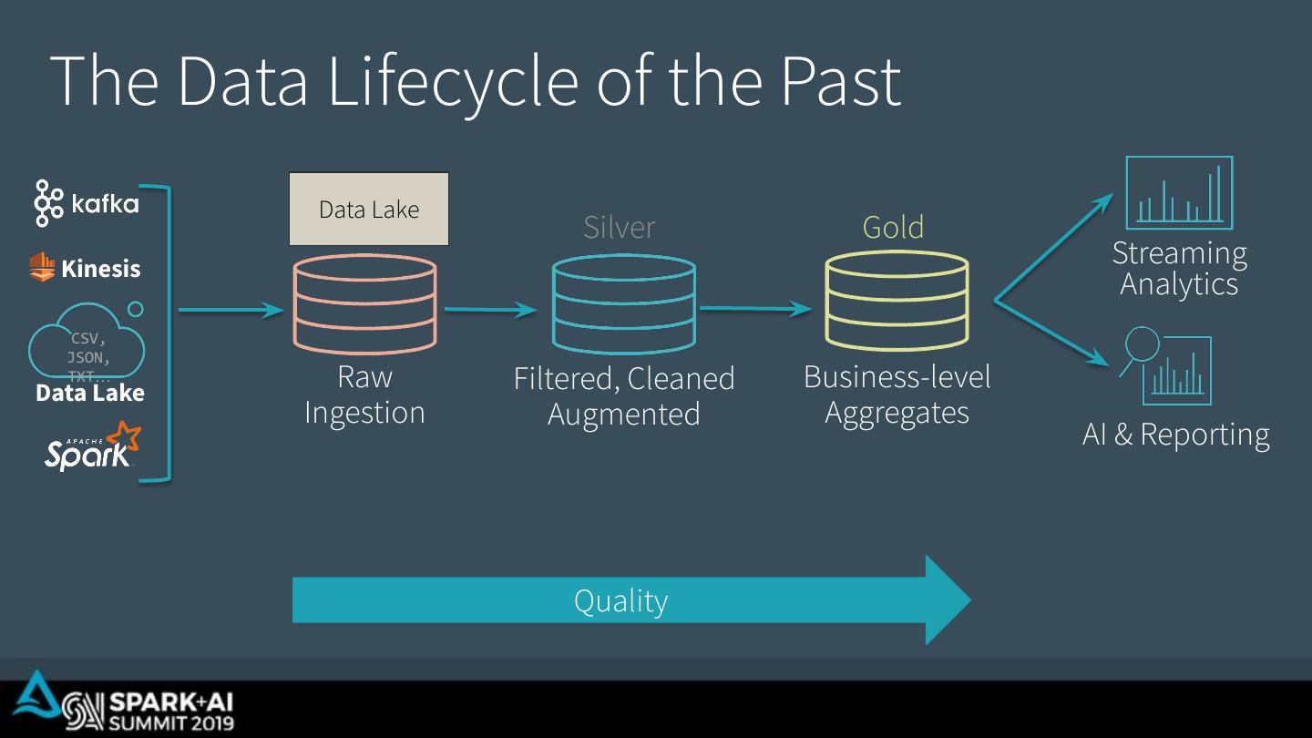 15 . The Data Lifecycle of the Past Bronze Silver Gold Kinesis Streaming Analytics CSV, JSON, TXT… Data Lake Raw Filtered, Cleaned Business-level Ingestion Augmented Aggregates AI & Reporting Quality