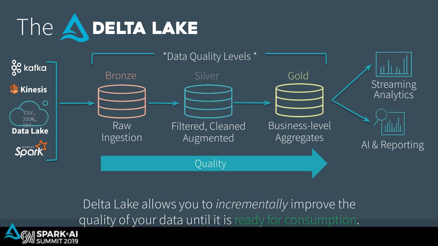 We’re always told to ‘Go for the Gold!,’ but how do we get there? This talk will walk you through the process of moving your data to the finish fine to get that gold metal! A common data engineering pipeline architecture uses tables that correspond to different quality levels, progressively adding structure to the data: data ingestion (‘Bronze’ tables), transformation/feature engineering (‘Silver’ tables), and machine learning training or prediction (‘Gold’ tables). Combined, we refer to these tables as a ‘multi-hop’ architecture. It allows data engineers to build a pipeline that begins with raw data as a ‘single source of truth’ from which everything flows. In this session, we will show how to build a scalable data engineering data pipeline using Delta Lake, so you can be the champion in your organization.