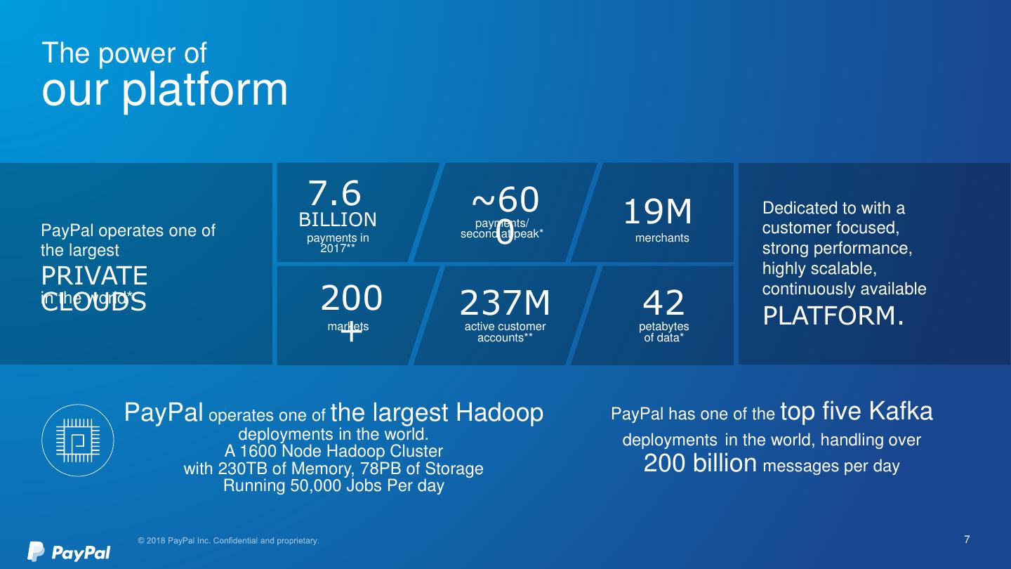 6 .PayPal Datasets Transactio n Consumer Partners Credit Merchants Risk Reversals CBT Activity Disputes Invoice Email Applicatio n Logs Payment Demo- Location Products graphics Social Media Marketing Spending 6