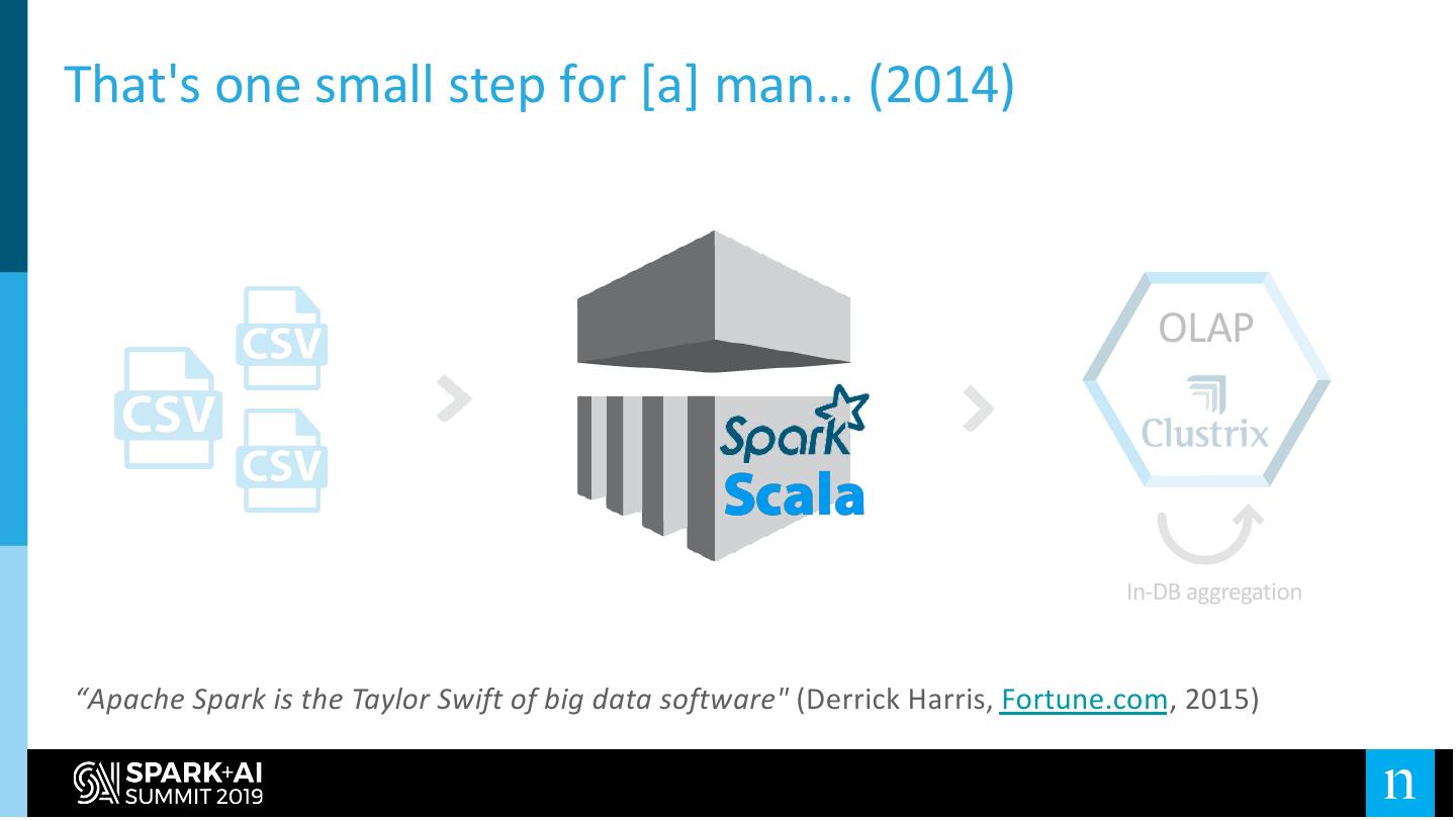 11 .That's one small step for [a] man… (2014) OLAP In-DB aggregation “Apache Spark is the Taylor Swift of big data software" (Derrick Harris, Fortune.com, 2015)