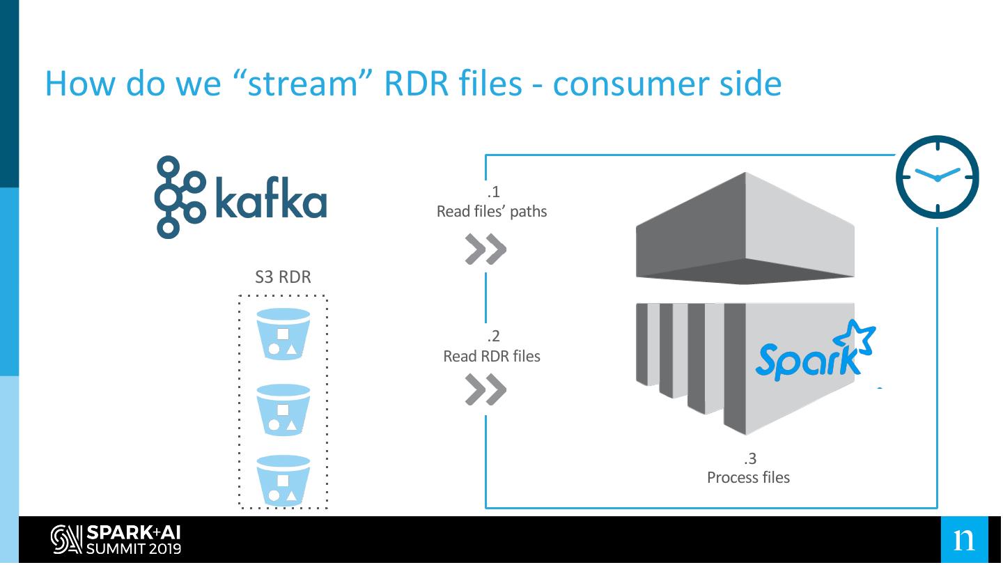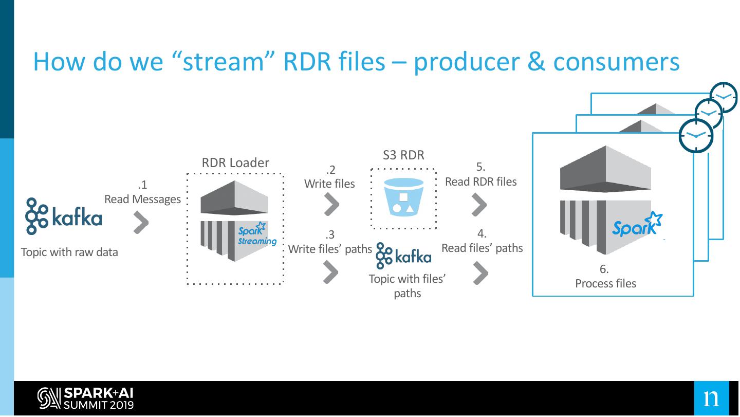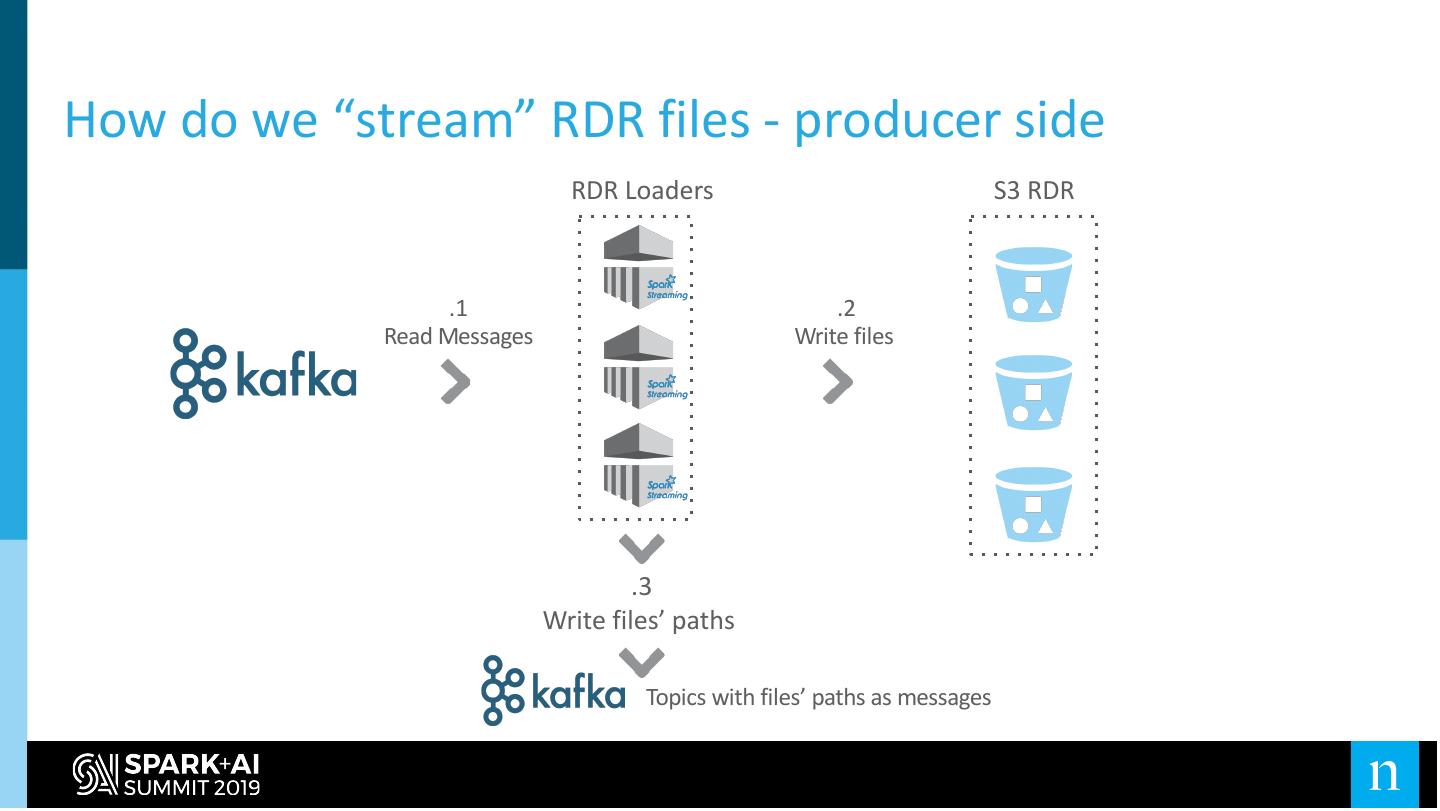 29 .How do we “stream” RDR files - producer side RDR Loaders S3 RDR .1 .2 Read Messages Write files .3 Write files’ paths Topics with files’ paths as messages