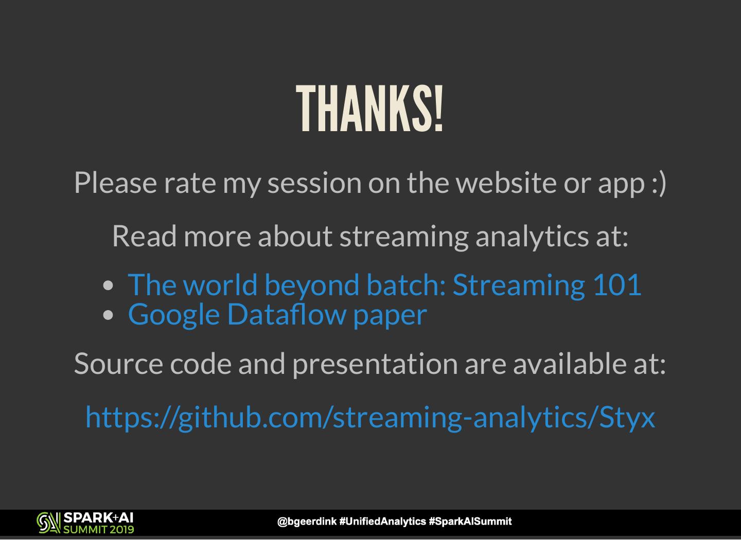 In this talk, I’ll present an architecture for streaming analytics solutions that covers many use cases that follow this pattern: actionable insights, fraud detection, log parsing, traffic analysis, factory data, the IoT, and others. I’ll go through a few architecture challenges that will arise when dealing with streaming data, such as latency issues, event time vs server time, and exactly-once processing. The solution is build on the KISSS stack: Kafka, Ignite, and Spark Structured Streaming. The solution is open source and available on GitHub.