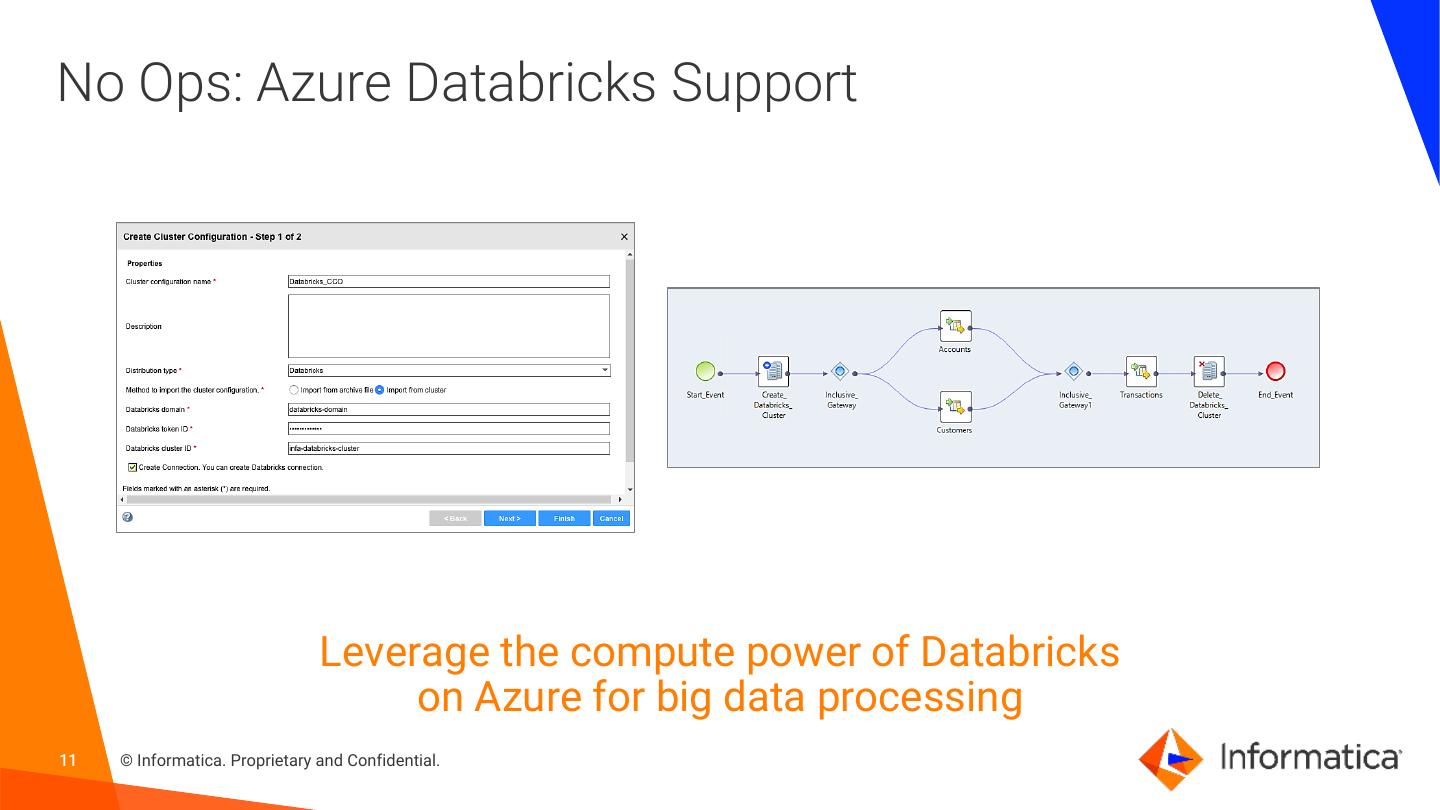 11 .No Ops: Azure Databricks Support Leverage the compute power of Databricks on Azure for big data processing 11 © Informatica. Proprietary and Confidential.