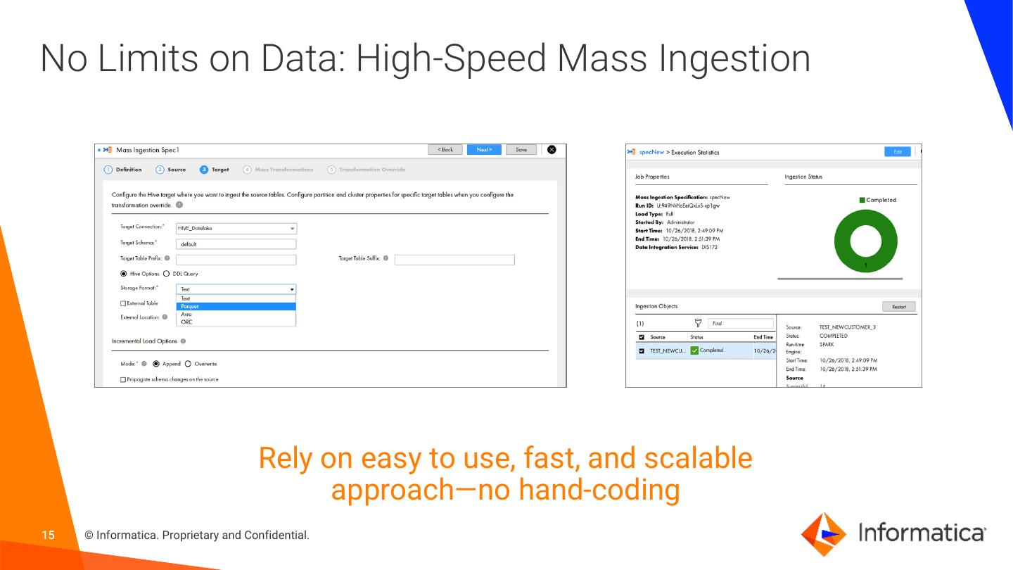 15 .No Limits on Data: High-Speed Mass Ingestion Rely on easy to use, fast, and scalable approach—no hand-coding 15 © Informatica. Proprietary and Confidential.