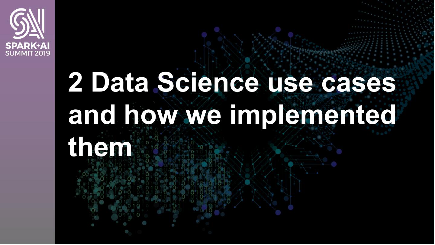 3 .Overview of this talk Set Context for the talk Introductions Discuss Spark + Python + ML 5 Ways to Process Data with Spark & Python 2 Data Science Use Cases and how we implemented them #UnifiedDataAnalytics #SparkAISummit 3