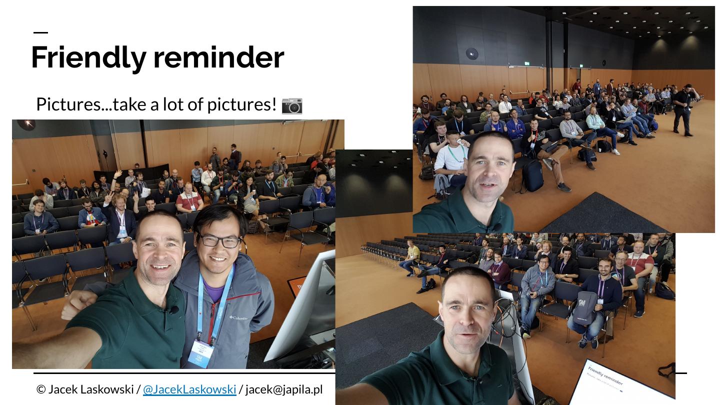 3 .Friendly reminder Pictures...take a lot of pictures! 📷 © Jacek Laskowski / @JacekLaskowski / jacek@japila.pl