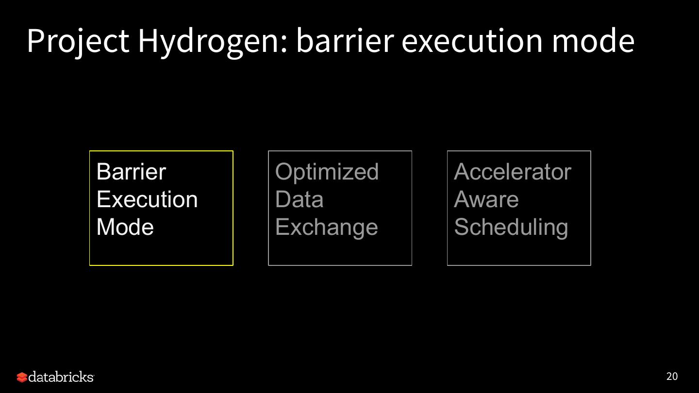 20 .Project Hydrogen: barrier execution mode Barrier Optimized Accelerator Execution Data Aware Mode Exchange Scheduling 20