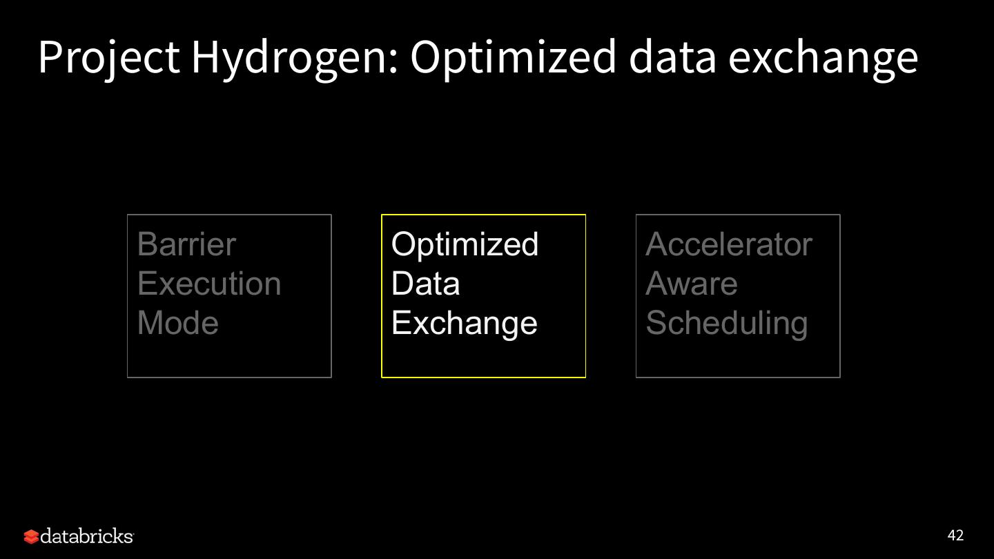 4 .About Project Hydrogen Announced last June, Project Hydrogen is a major Spark initiative to unify state-of-the-art AI and big data workloads. Barrier Optimized Accelerator Execution Data Aware Mode Exchange Scheduling 4