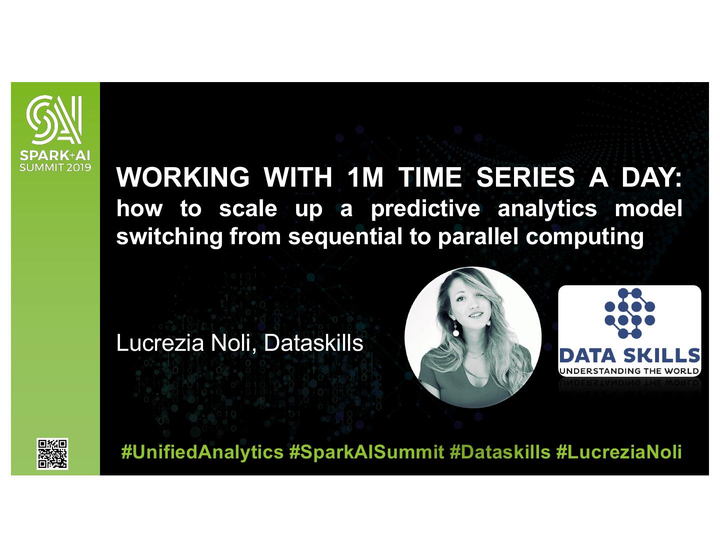 2 .WORKING WITH 1M TIME SERIES A DAY: how to scale up a predictive analytics model switching from sequential to parallel computing Lucrezia Noli, Dataskills #UnifiedAnalytics #SparkAISummit #Dataskills #LucreziaNoli