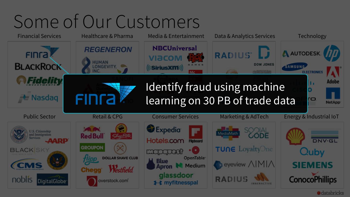 11 .Some of Our Customers Financial Services Healthcare & Pharma Media & Entertainment Data & Analytics Services Technology Identify fraud using machine learning on 30 PB of trade data Public Sector Retail & CPG Consumer Services Marketing & AdTech Energy & Industrial IoT 11