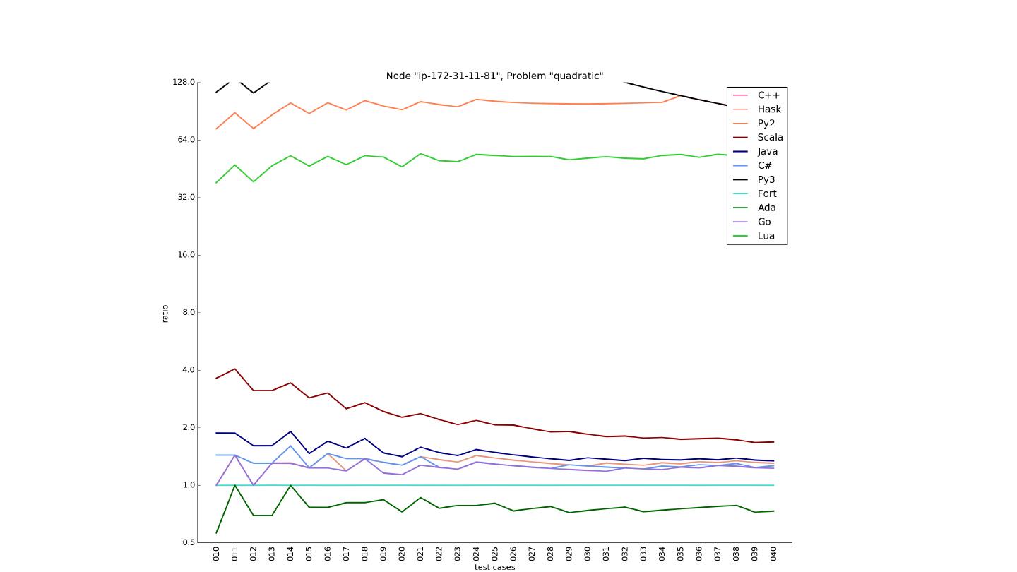 21 .Versions on ip-172-31-11-81 Language Version Ada (Gnat) GNATMAKE 4.6 C/C++/Fortran (Ubuntu 4.8.4-2ubuntu1~14.04.1) 4.8.4 C# (mono) Mono C# compiler version 3.2.8.0 Go go version go1.2.1 linux/amd64 Haskell (ghc) The Glorious Glasgow Haskell Compilation System, version 7.6.3 Java javac 1.8.0_66 Java(TM) SE Runtime Environment (build 1.8.0_66-b17) Java HotSpot(TM) 64-Bit Server VM (build 25.66-b17, mixed mode) Lua Lua 5.2.3 Copyright (C) 1994-2013 Lua.org, PUC-Rio Pascal (fpc) 2014/01/22 2.6.2-8 Python 2 Python 2.7.6 Python 3 Python 3.4.3 Scala Scala compiler version 2.11.7-M2 -- Copyright 2002-2013, LAMP/EPFL Scala code runner version 2.11.7-M2 -- Copyright 2002-2013, LAMP/EPFL