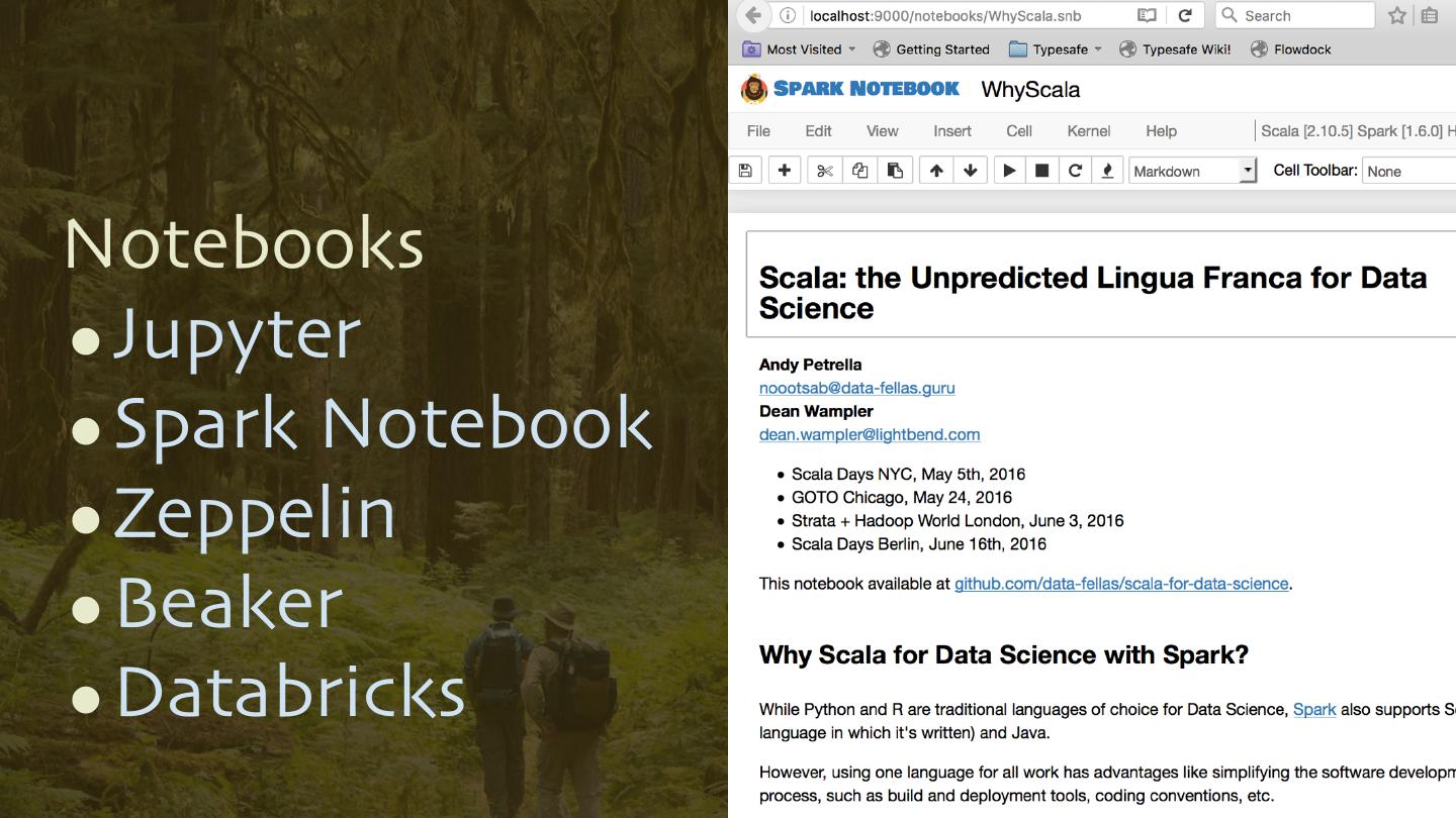 7 .Notebooks •Jupyter •Spark Notebook •Zeppelin •Beaker •Databricks 7