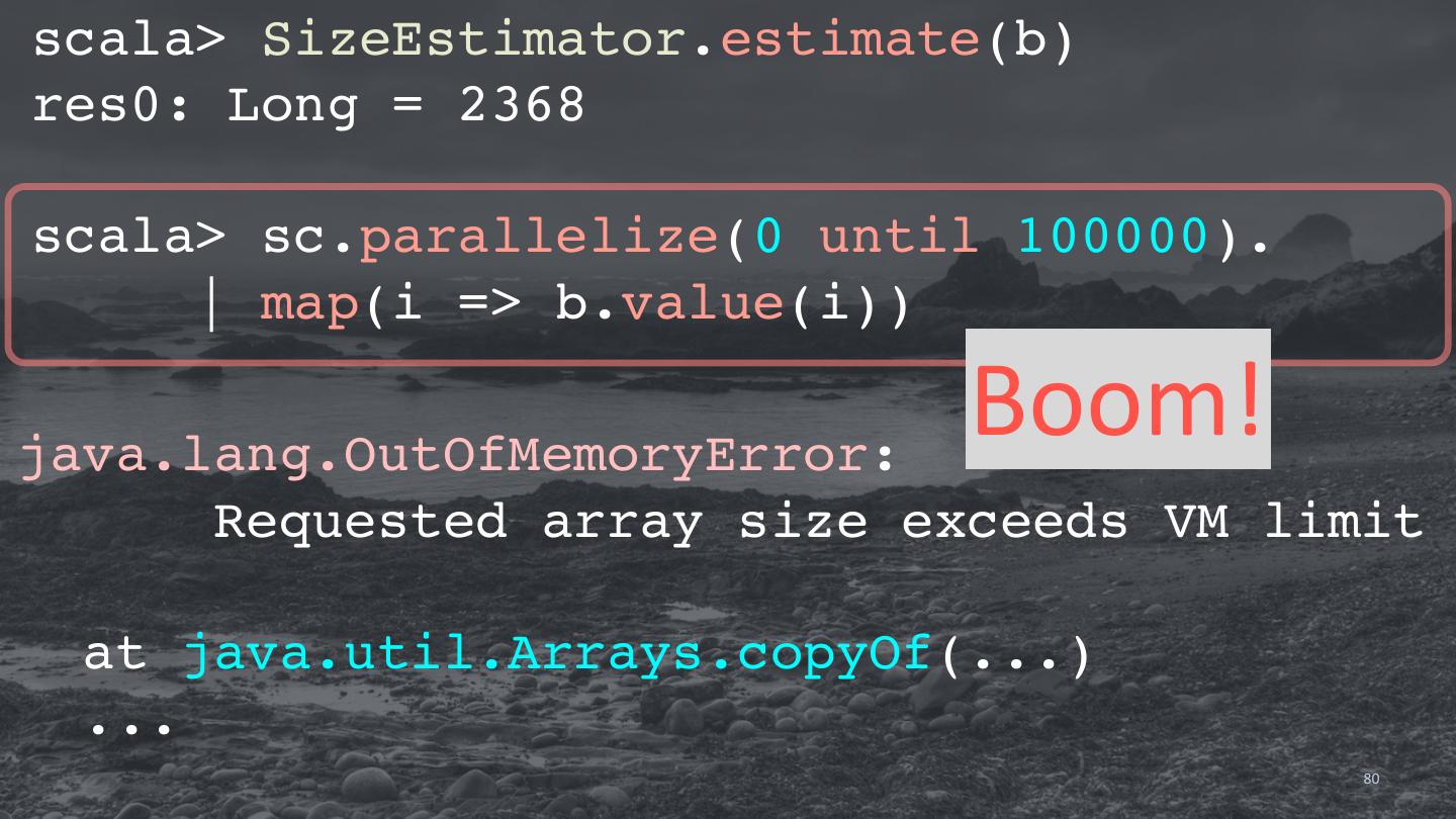 29 .val planes_for_flights2 = flights.join(planes, flights("tailNum") === planes ("tailNum")).limit(100) Not an “arbitrary” anonymous funcRon, but a “Column” instance. 29