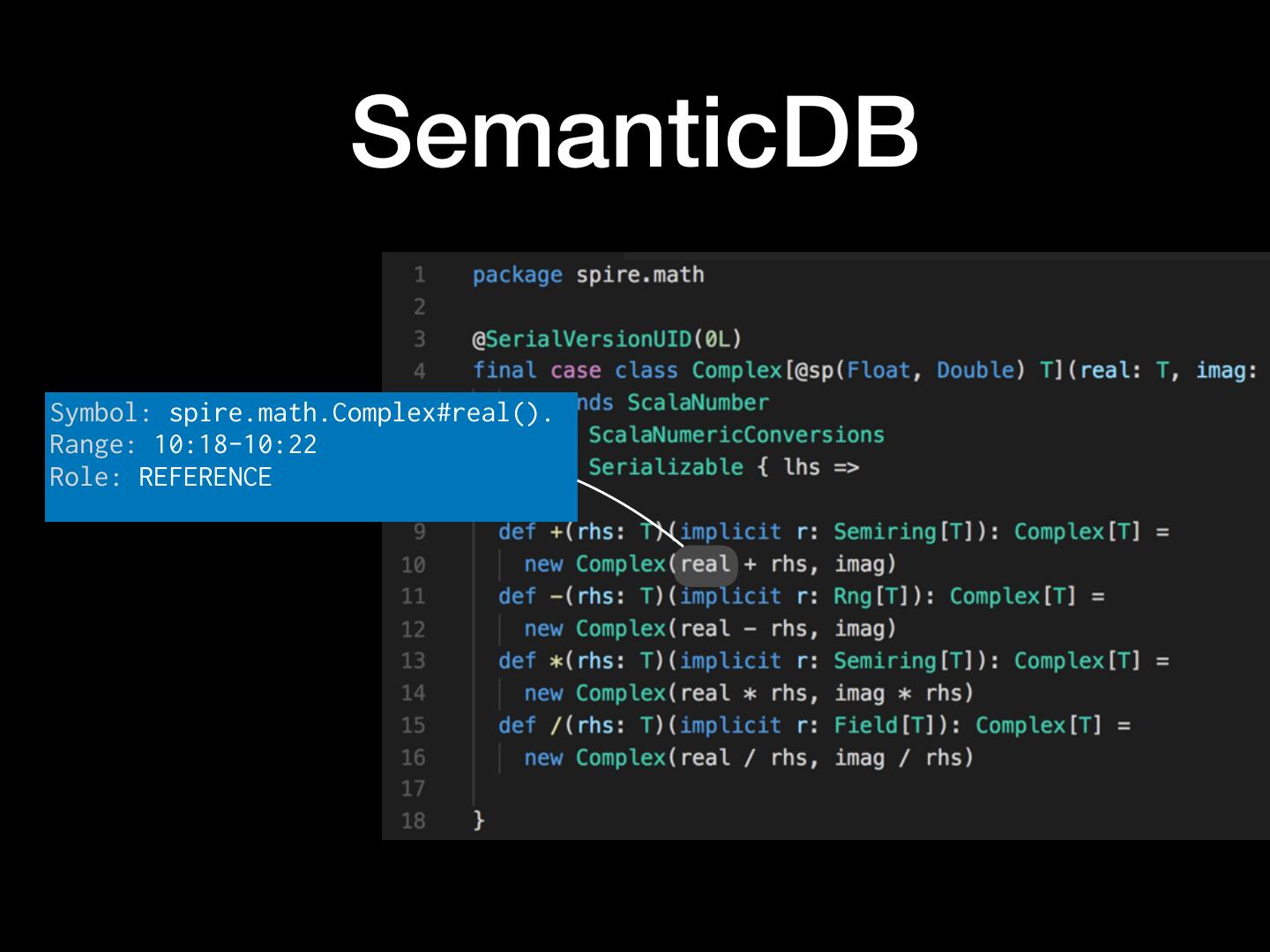 24 . SemanticDB Symbol: spire.math.Complex#real(). Range: 10:18-10:22 Role: REFERENCE