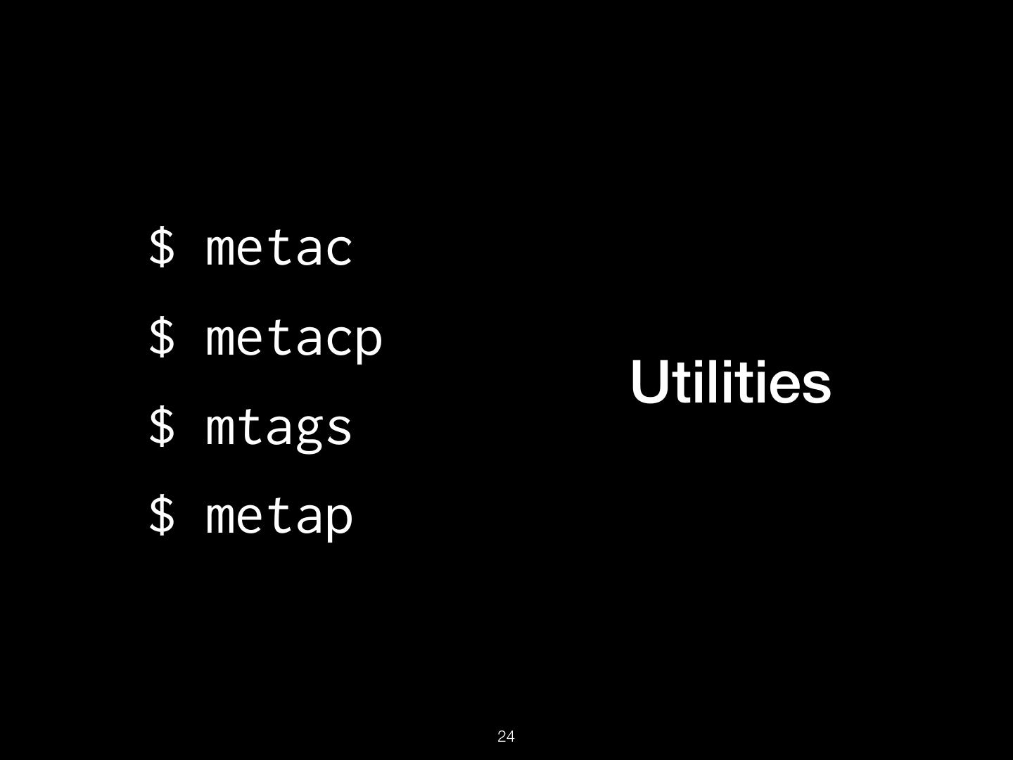 24 .$ metac $ metacp Utilities $ mtags $ metap !24