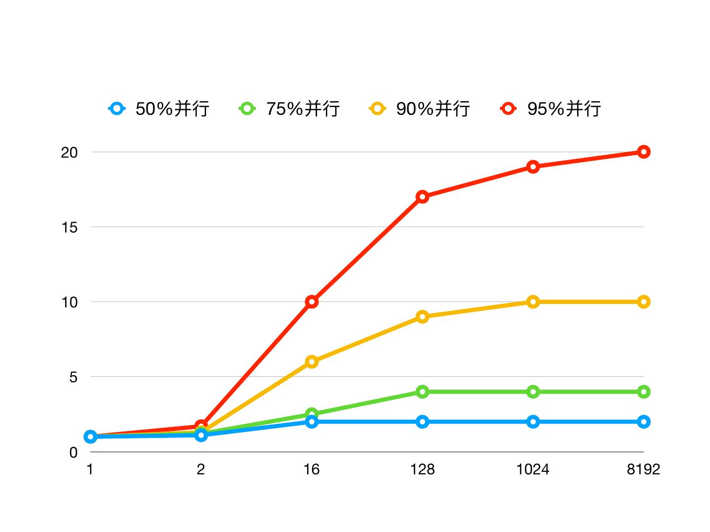 8 . 50%并⾏行行 75%并⾏行行 90%并⾏行行 95%并⾏行行 20 15 10 5 0 1 2 16 128 1024 8192