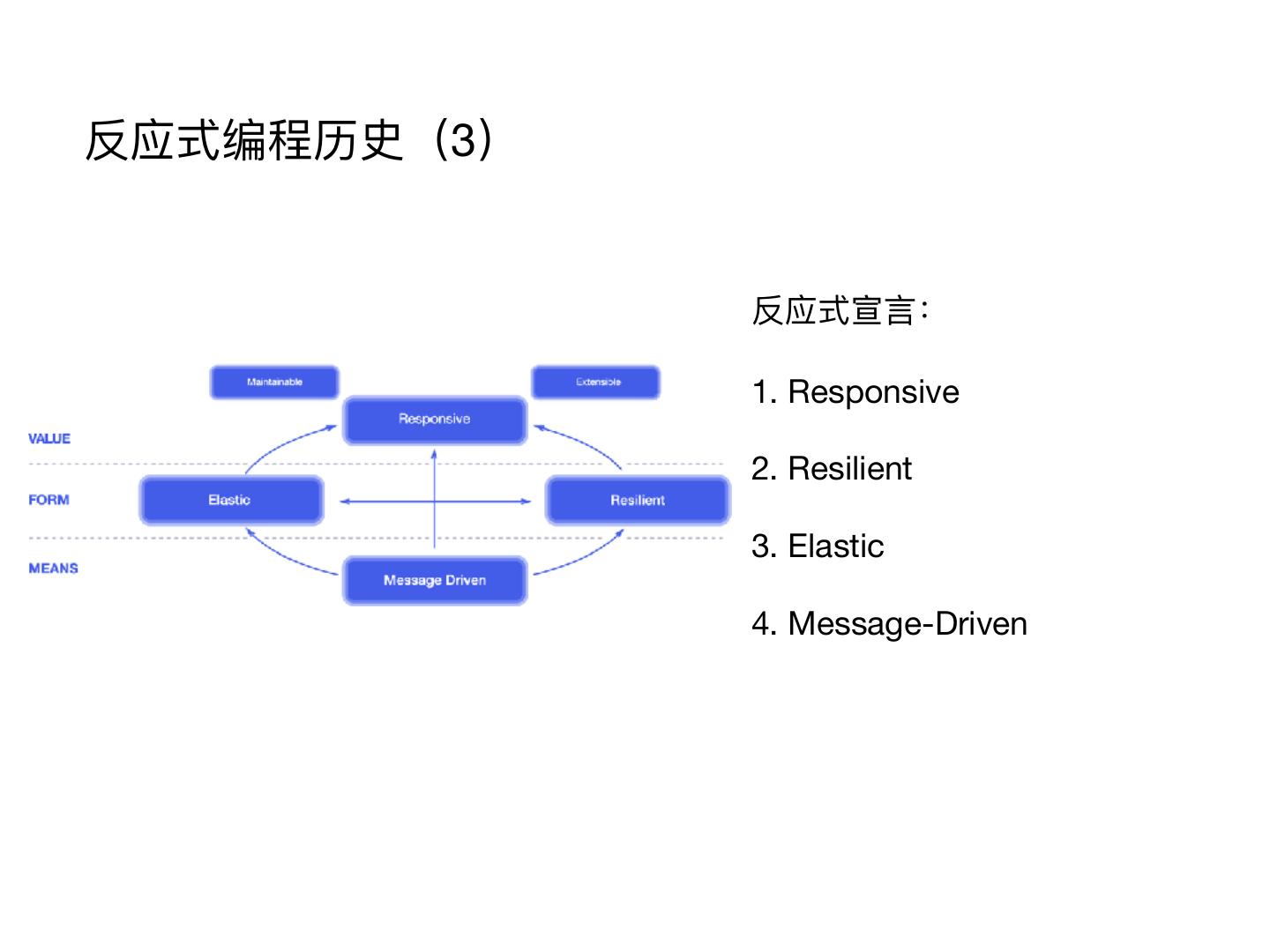 14 .反应式编程历史(3) 反应式宣⾔言: 1. Responsive 2. Resilient 3. Elastic 4. Message-Driven