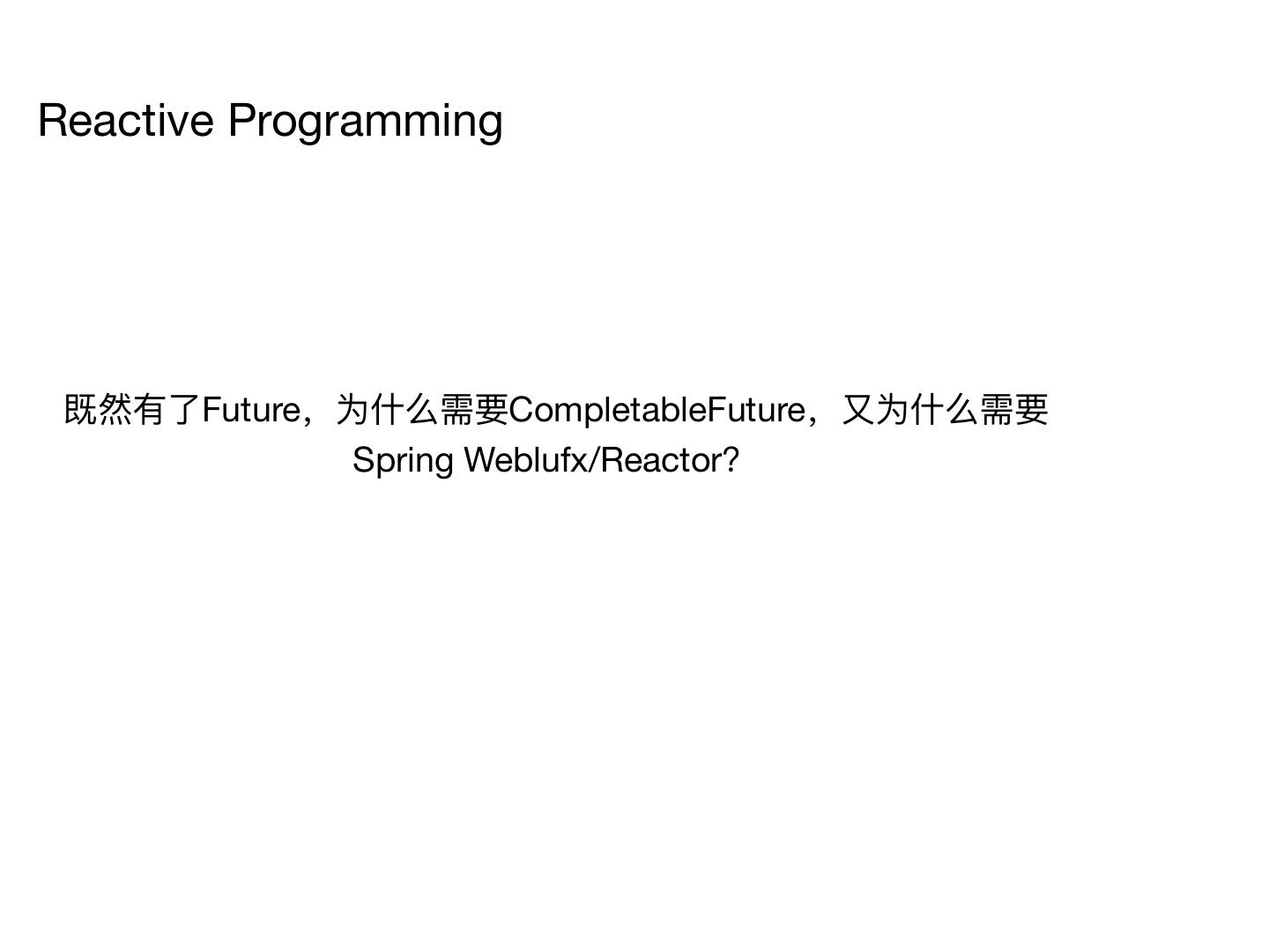 19 .Reactive Programming 既然有了了Future,为什什么需要CompletableFuture,⼜又为什什么需要 Spring Weblufx/Reactor?