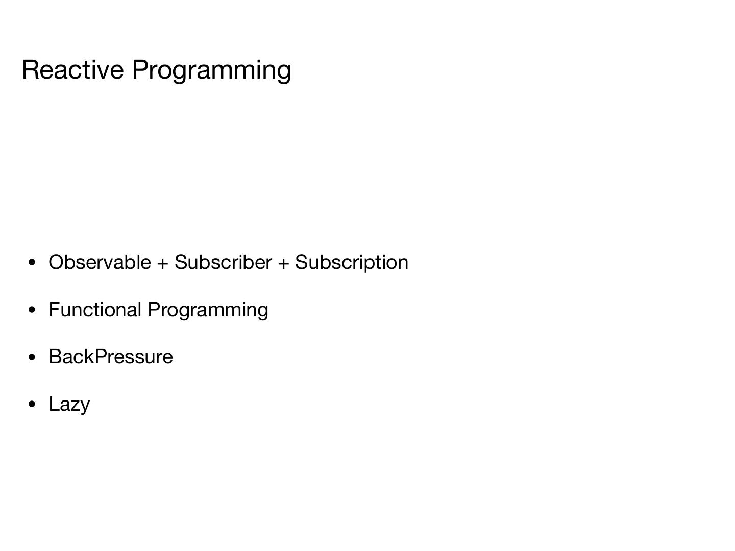 20 .Reactive Programming • Observable + Subscriber + Subscription • Functional Programming • BackPressure • Lazy