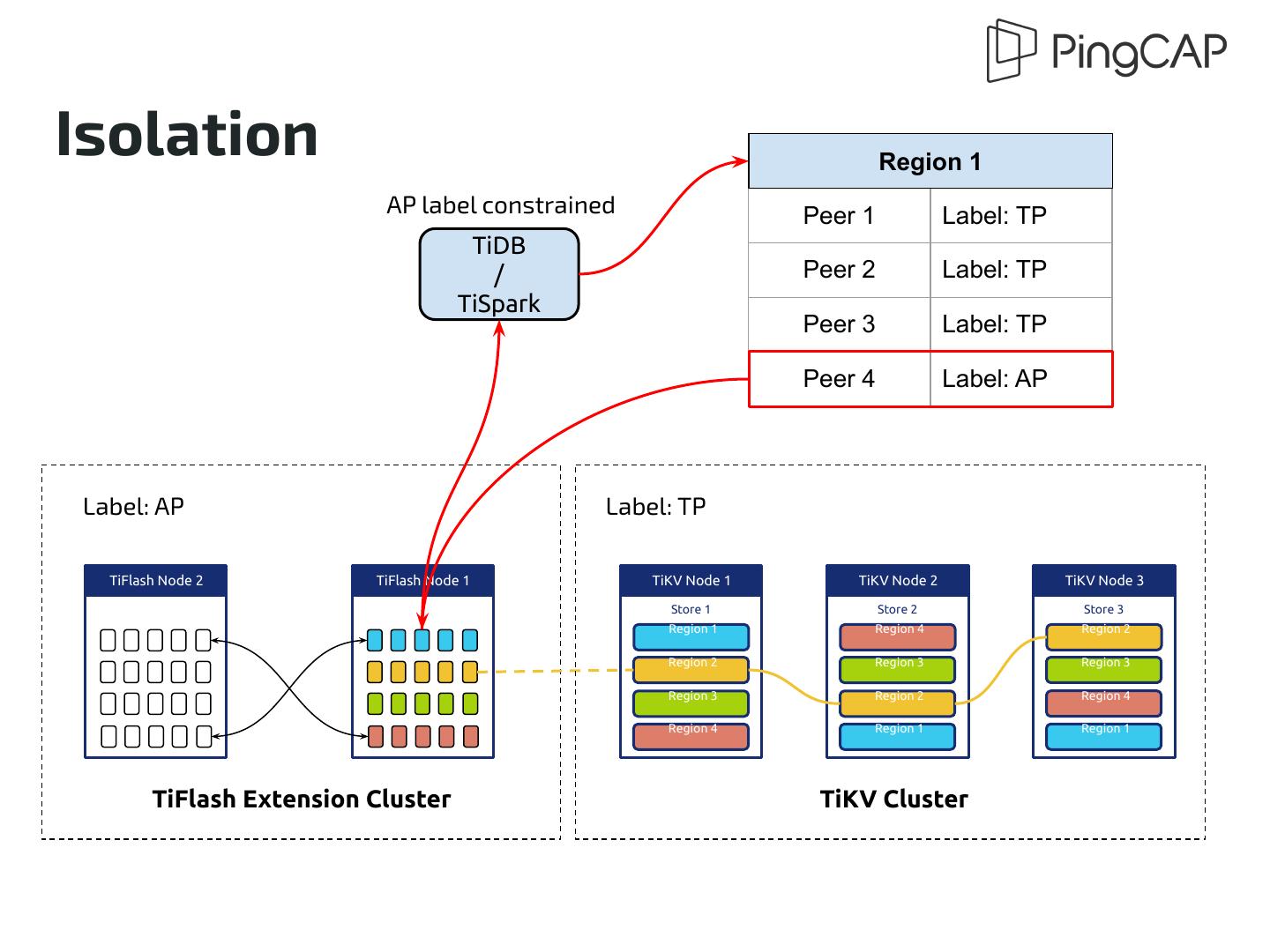 24 .Isolation Region 1 AP label constrained Peer 1 Label: TP TiDB / Peer 2 Label: TP TiSpark Peer 3 Label: TP Peer 4 Label: AP Label: AP Label: TP TiFlash Node 2 TiFlash Node 1 TiKV Node 1 TiKV Node 2 TiKV Node 3 Store 1 Store 2 Store 3 Region 1 Region 4 Region 2 Region 2 Region 3 Region 3 Region 3 Region 2 Region 4 Region 4 Region 1 Region 1 TiFlash Extension Cluster TiKV Cluster