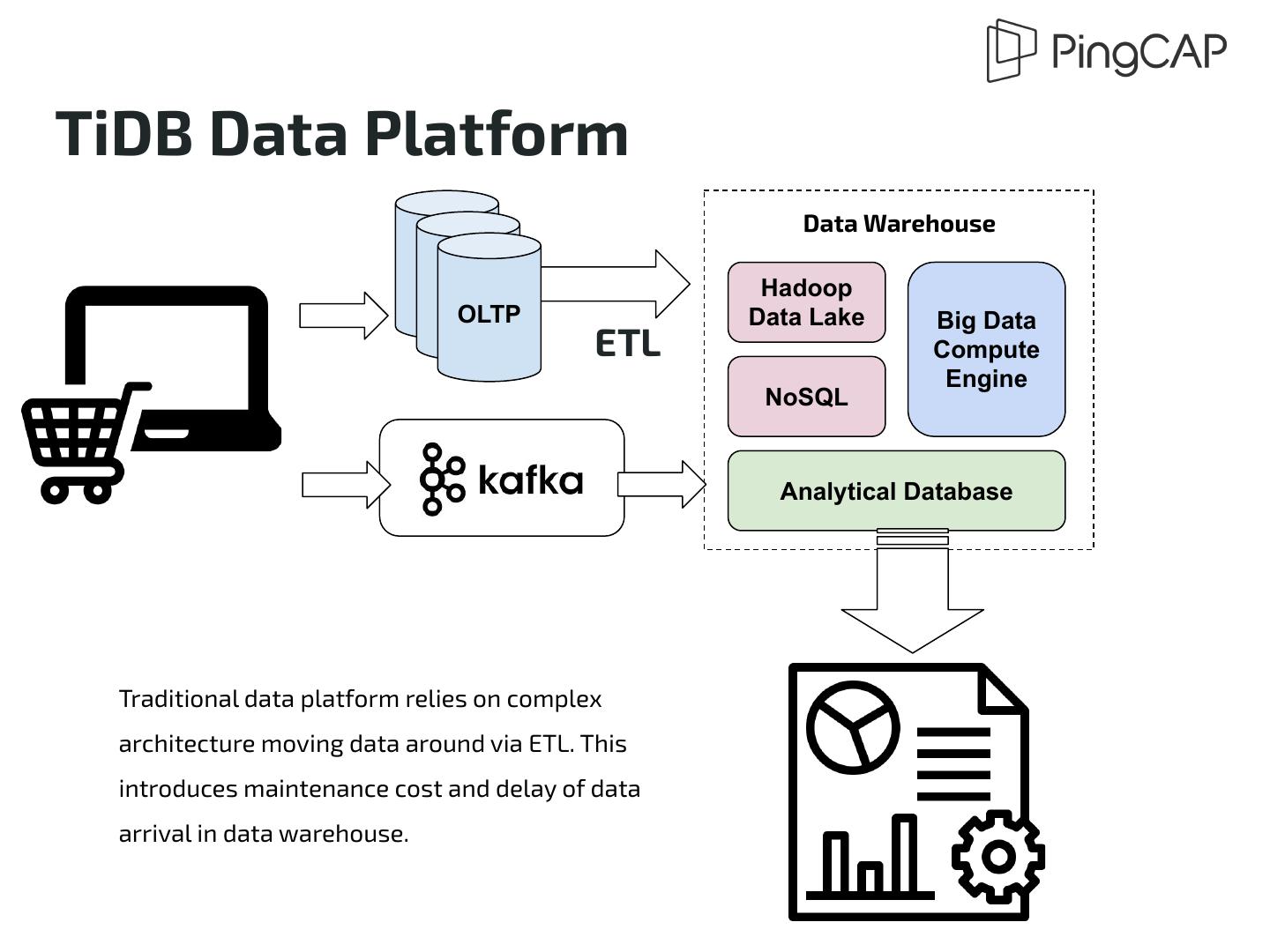 4 .Traditional Data Platform Data Warehouse OLTP OLTP Hadoop OLTP Data Lake Big Data ETL Compute Engine NoSQL Analytical Database Traditional data platform relies on complex architecture moving data around via ETL. This introduces maintenance cost and delay of data arrival in data warehouse.