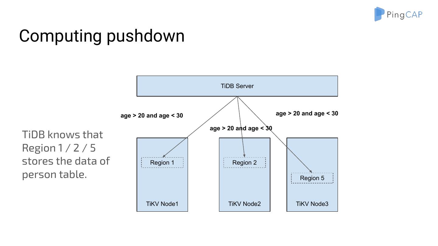 25 .TiKV: The whole picture Client Placement Driver RPC RPC RPC RPC PD 1 Store 1 Store 2 Store 3 Store 4 PD 2 Region 1 Region 1 Region 2 Region 1 Region 3 Region 5 Region 2 PD 3 Region 2 Raft Region 5 Region 3 Region 5 Region 4 Group Region 4 Region 4 Region 3 TiKV node 1 TiKV node 2 TiKV node 3 TiKV node 4