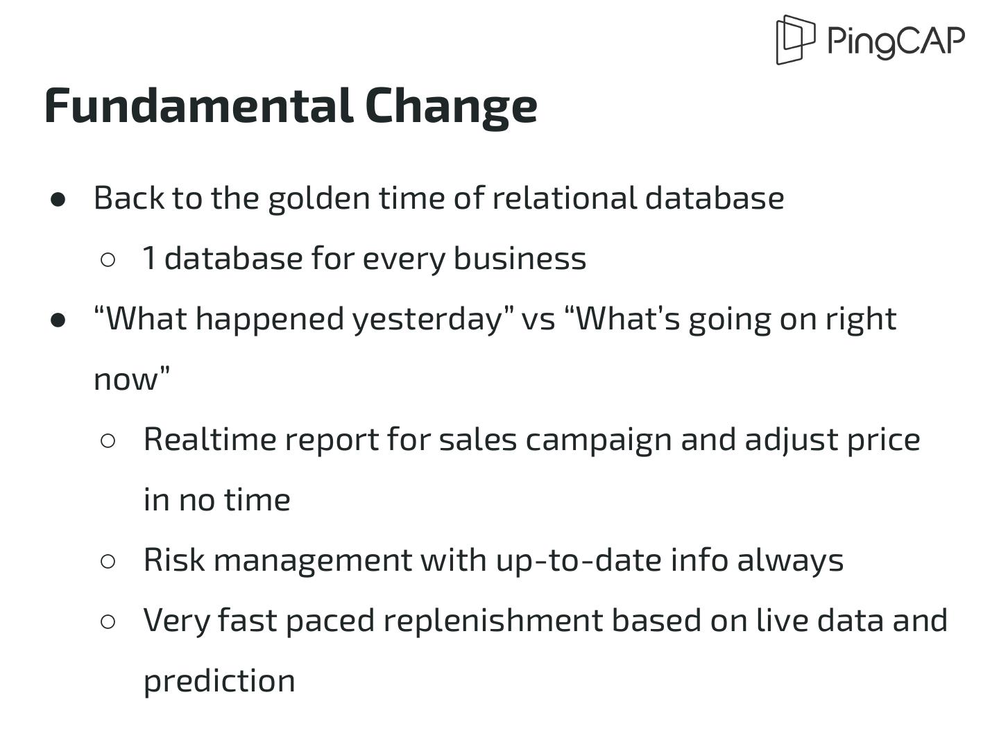 3 .About Me ● Sun Ruoxi 孙若曦 ● Senior expert, Analytical Product@PingCAP ● Previously ○ Tech lead, SQL on Hadoop team@Transwarp ○ Tech lead, Arch Infra team@NVIDIA ● Mainly working on Big-data / SQL related things