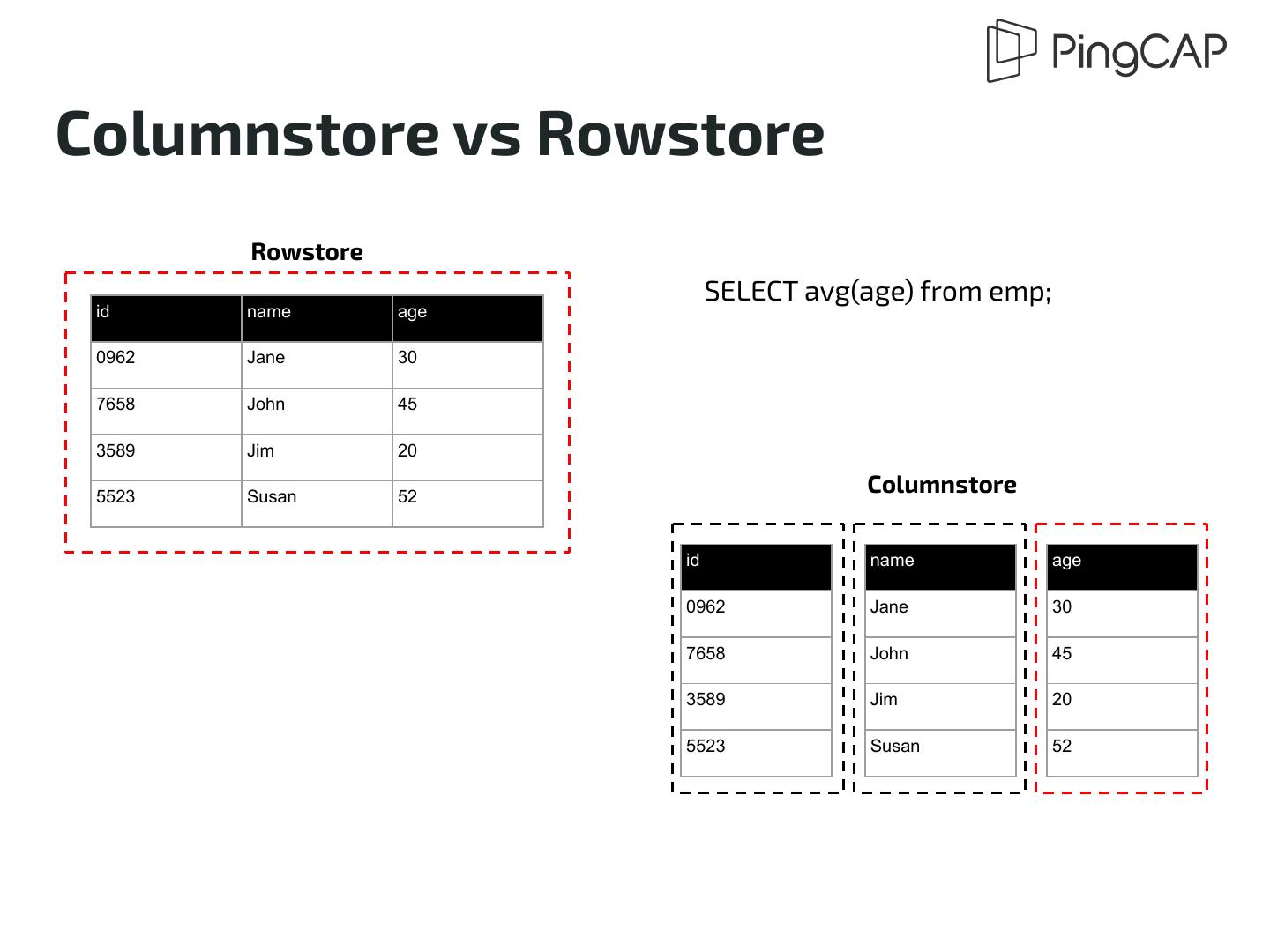 15 .Columnstore vs Rowstore Rowstore SELECT avg(age) from emp; id name age 0962 Jane 30 7658 John 45 3589 Jim 20 5523 Susan 52 Columnstore id name age 0962 Jane 30 7658 John 45 3589 Jim 20 5523 Susan 52