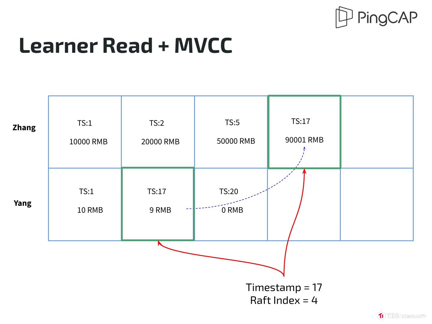 20 .Learner Read Timestamp : 17 Raft Leader 4 Raft Learner 3