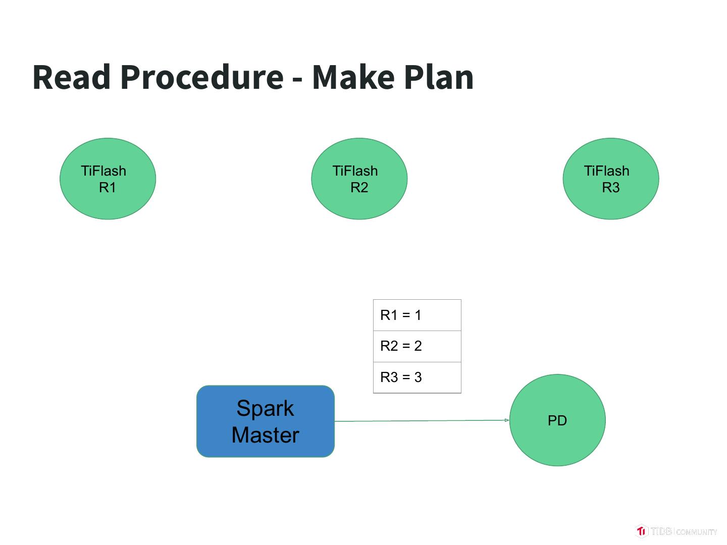 25 .Read Procedure - Make Plan TiFlash TiFlash TiFlash R1 R2 R3 R1 = 1 R2 = 2 R3 = 3 Spark PD Master