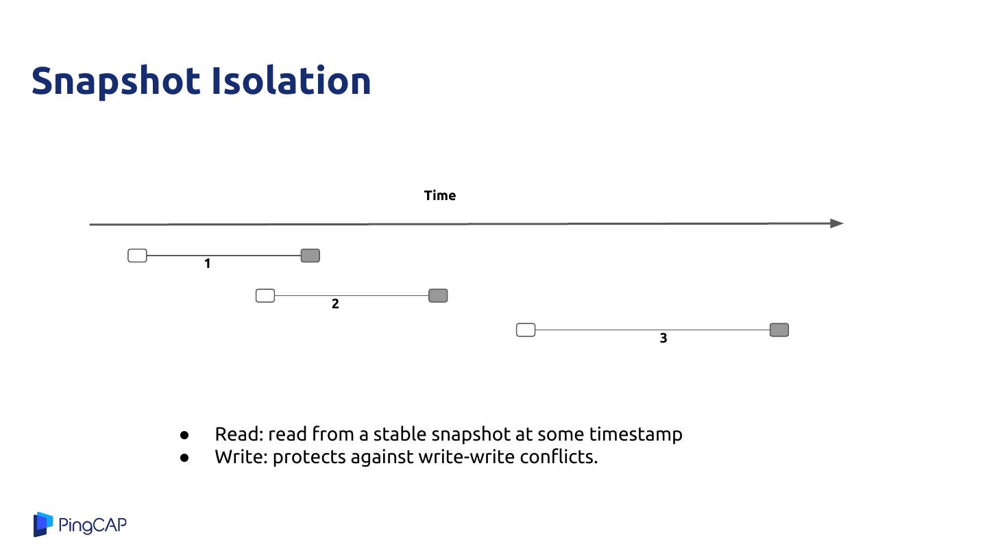 15 .Snapshot Isolation Time 1 2 3 ● Read: read from a stable snapshot at some timestamp ● Write: protects against write-write conflicts.
