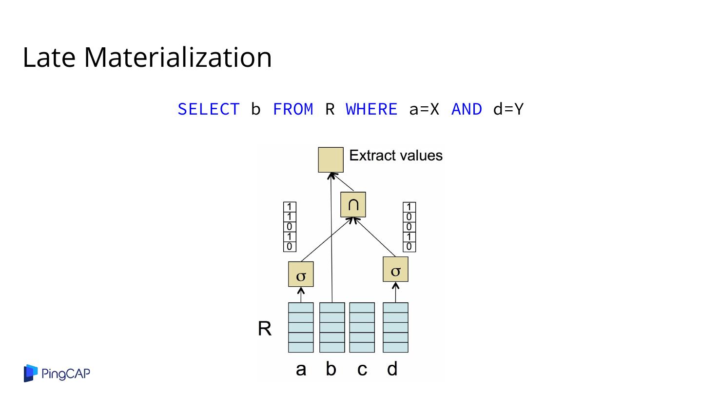 9 .Vectorized processing Late materialization Column compression Block iteration Columnar storage