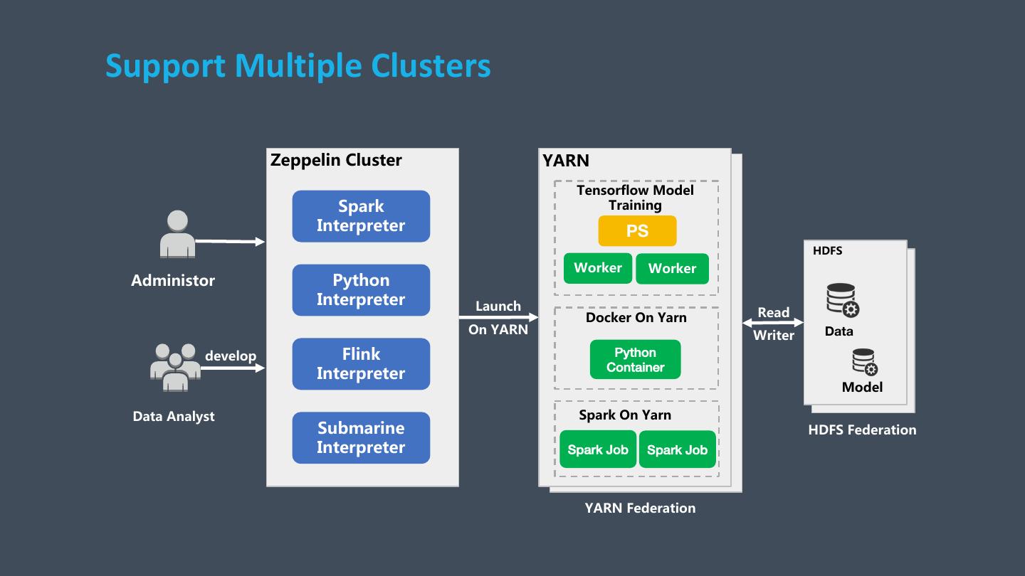 29 . Zeppelin Cluster + Docker (ZEPPELIN-4104) 1RWHERRN5HSR 6KGIVŏ =HSSHOLQ&OXVWHU 'RFNHU&RQWDLQHU 'RFNHU&RQWDLQHU interpreter- interpreter- processM process1 Cluster MetaData interpreter-process1 5DIW 5DIW thrift1(ip&port) interpreter-processM ]HSSHOLQ6HUYHU ]HSSHOLQ6HUYHU ]HSSHOLQ6HUYHU1 thriftM(ip&port) QJLQ[PDVWHU QJLQ[EDFNXS VZLWFK ]HSOQHWHDVHFRP 8VHU 8VHU