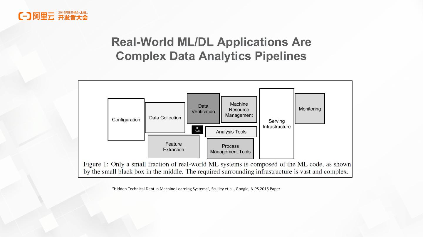4 .Real-World ML/DL Applications Are Complex Data Analytics Pipelines “Hidden Technical Debt in Machine Learning Systems”, Sculley et al., Google, NIPS 2015 Paper