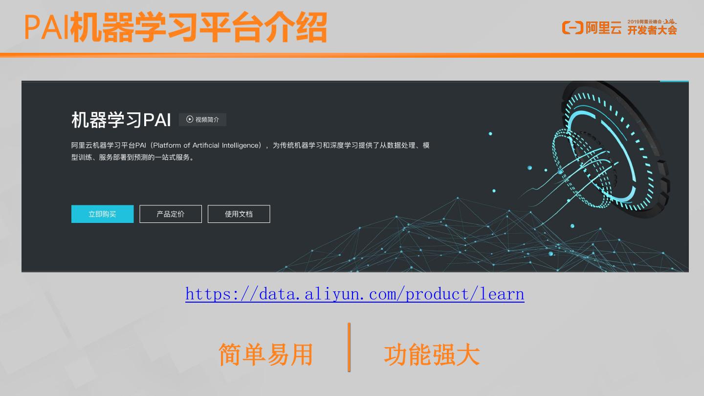 2 .PAI机器学习平台介绍 https://data.aliyun.com/product/learn 简单易用 功能强大