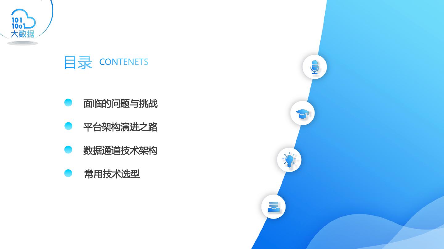 2 .面临的问题与挑战 平台架构演进之路 数据通道技术架构 常用技术选型